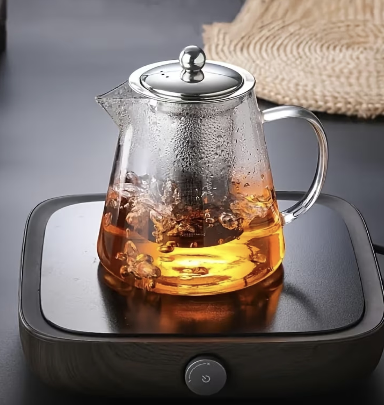 قوری شیشهای ضخیم پریمیوم با صافی استیل ضدزنگ – مقاوم در برابر حرارت، قابل شستوشو در ماشین ظرفشویی
