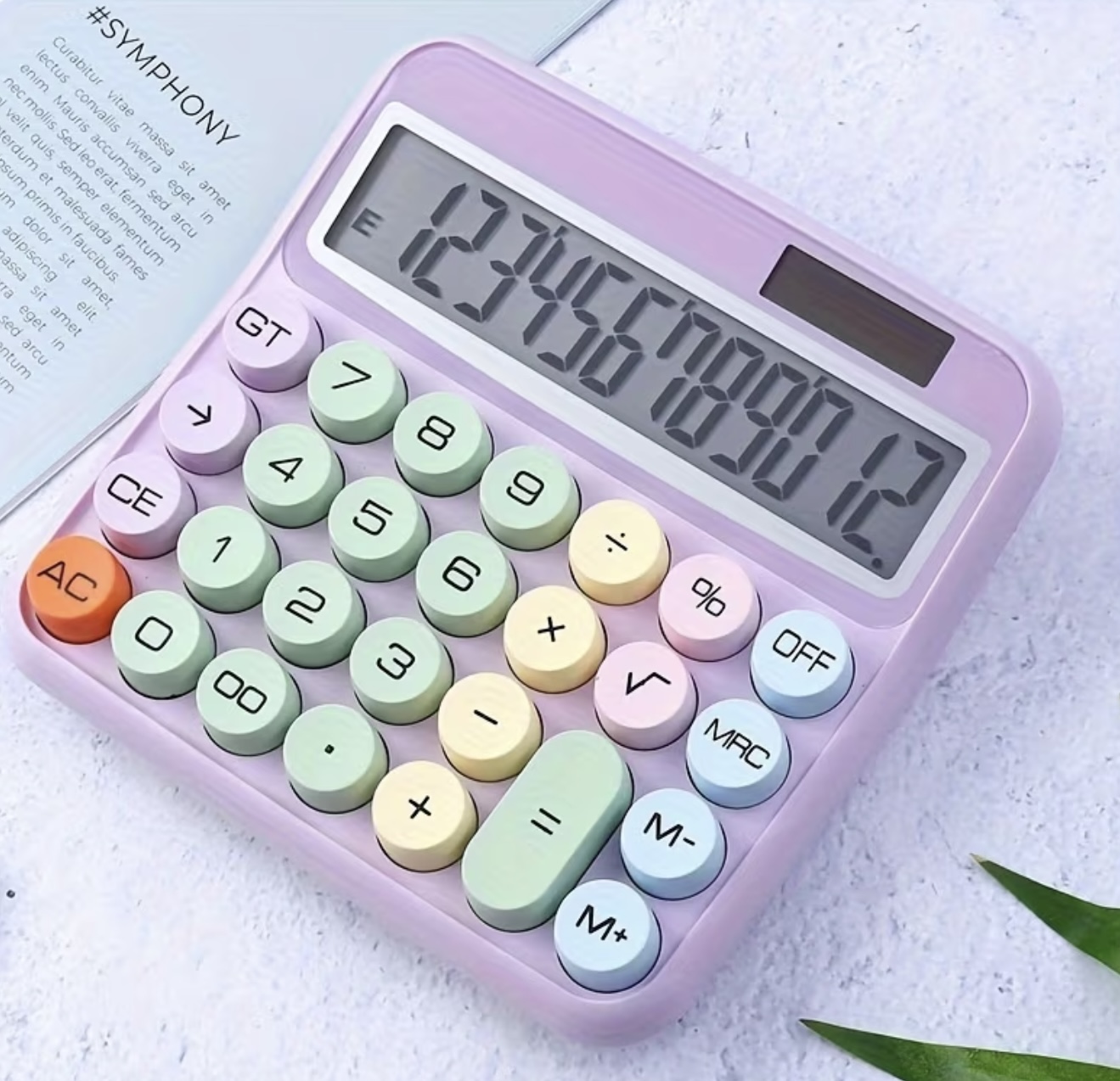 ماشین‌حساب رومیزی رنگی و بامزه با نمایشگر بزرگ ۱۲ رقمی
