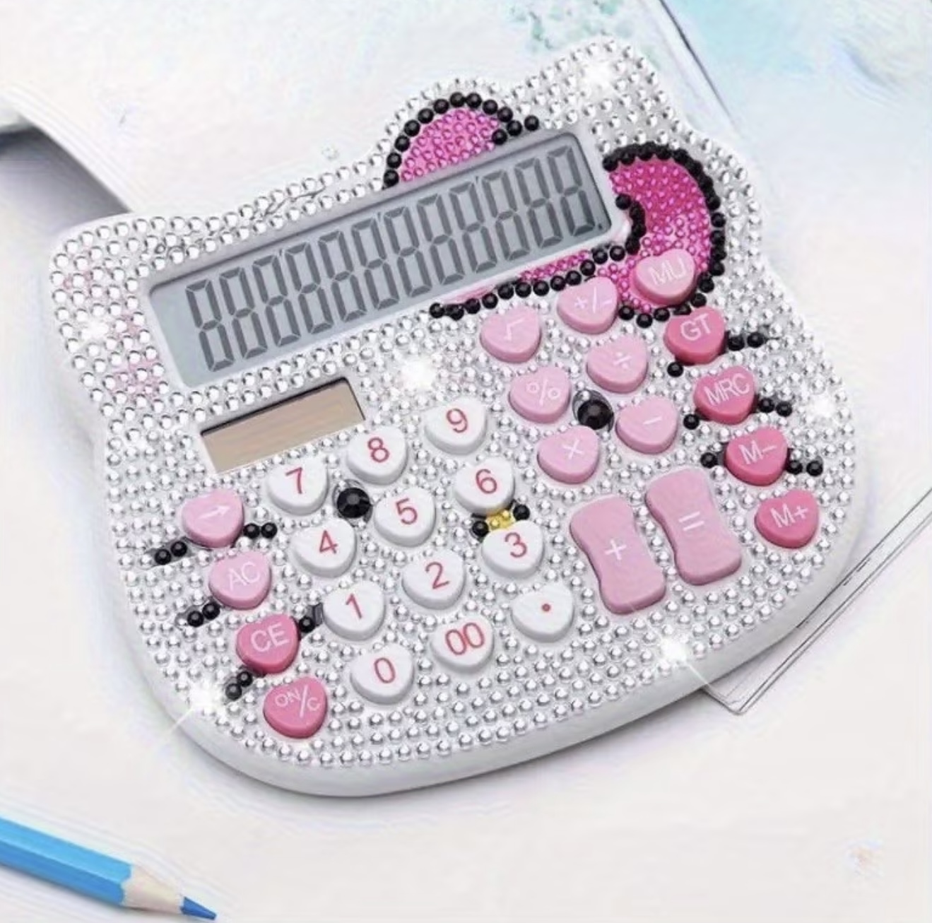 ماشینحساب کیتی بامزه سنریو با صفحه کریستالی و دکمه قلبی شکل