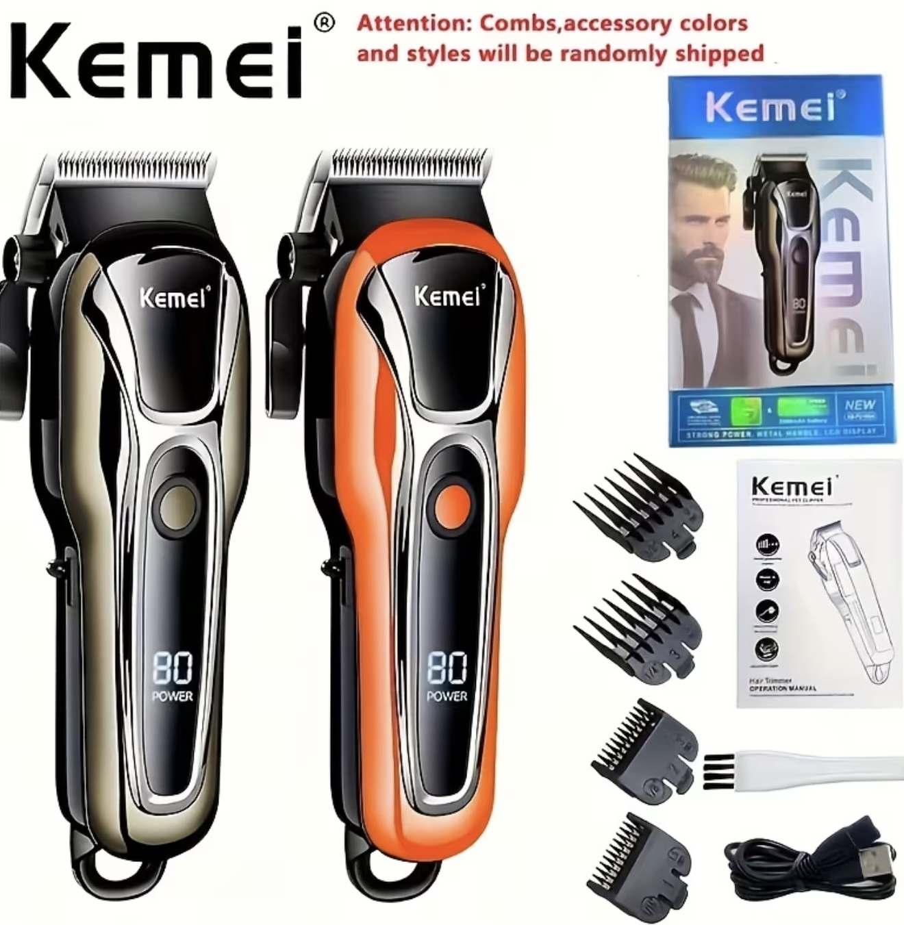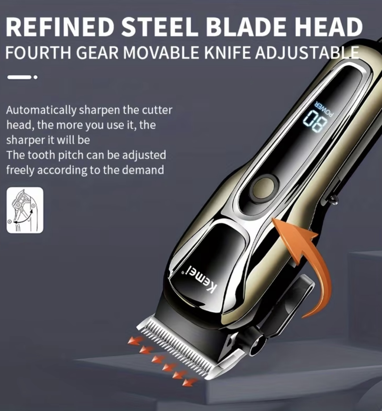 ماشین اصلاح موی حرفهای بیسیم برای آقایان، ماشین اصلاح برقی قابل شارژ USB، باتری لیتیومی ۲۰۰۰ میلیآمپری، نمایشگر LCD، عملکرد با ولتاژ پایین، مدل KM-PG1990A