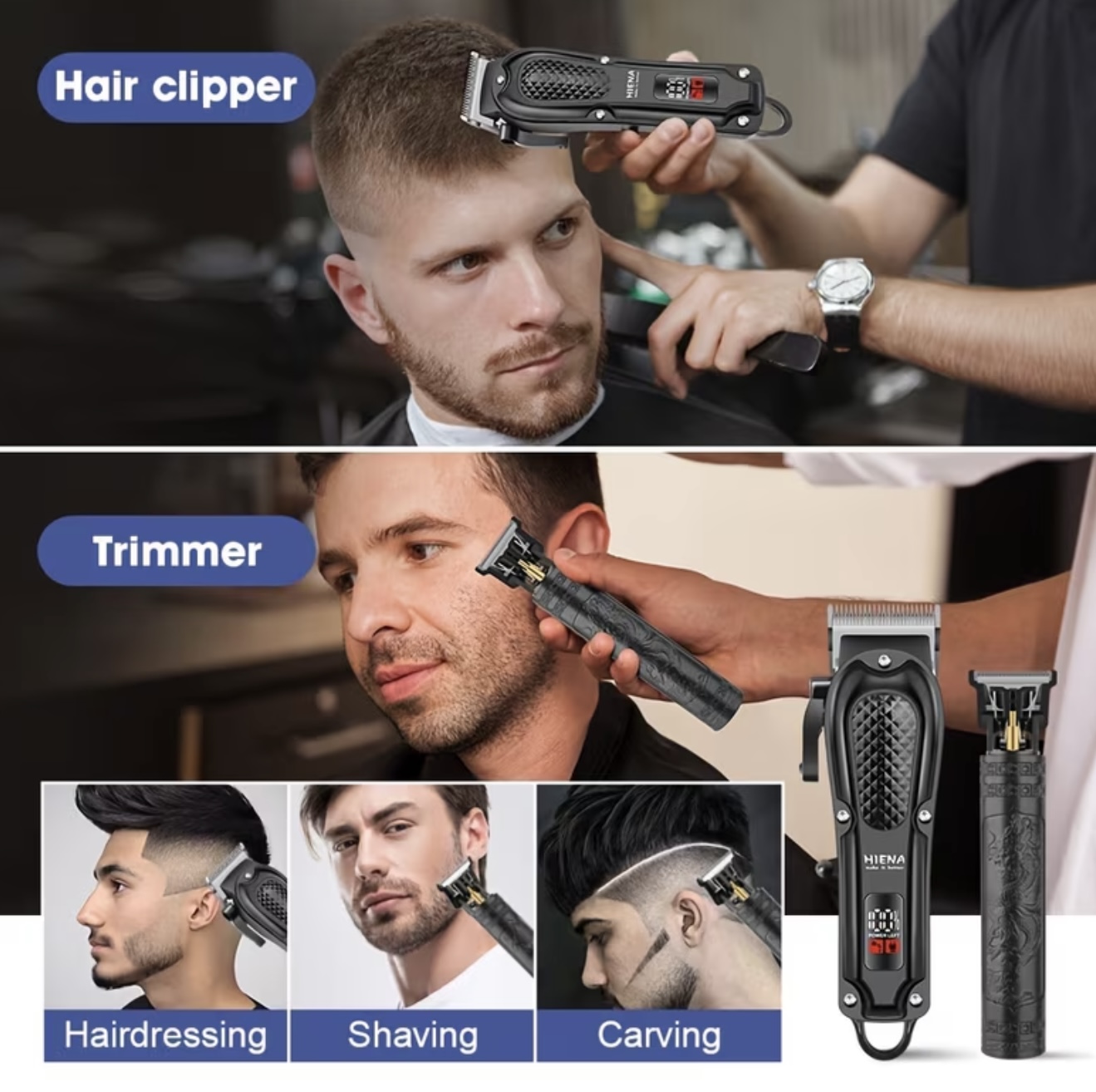 ماشین اصلاح موی مردانه دو تکه با نمایشگر دیجیتال