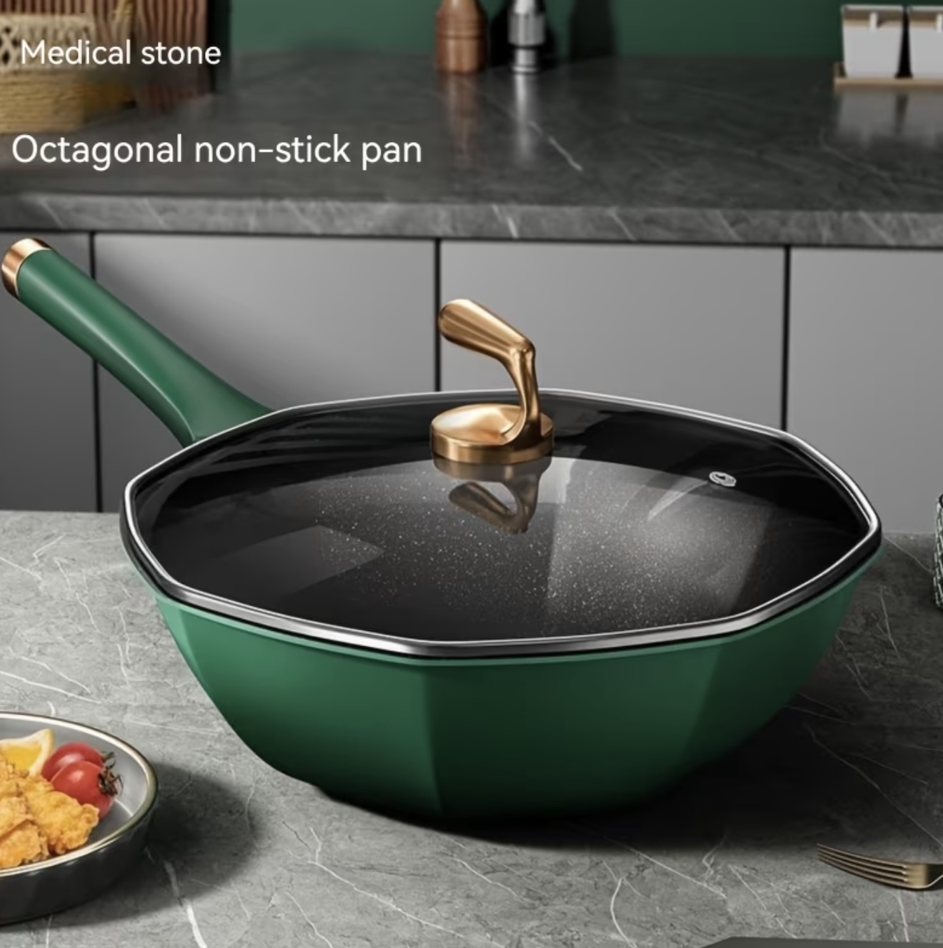 ماهیتابه هشت ضلعی با پوشش سنگی ضدچسب، کف صاف، مناسب سرخ‌کردن با روغن کم