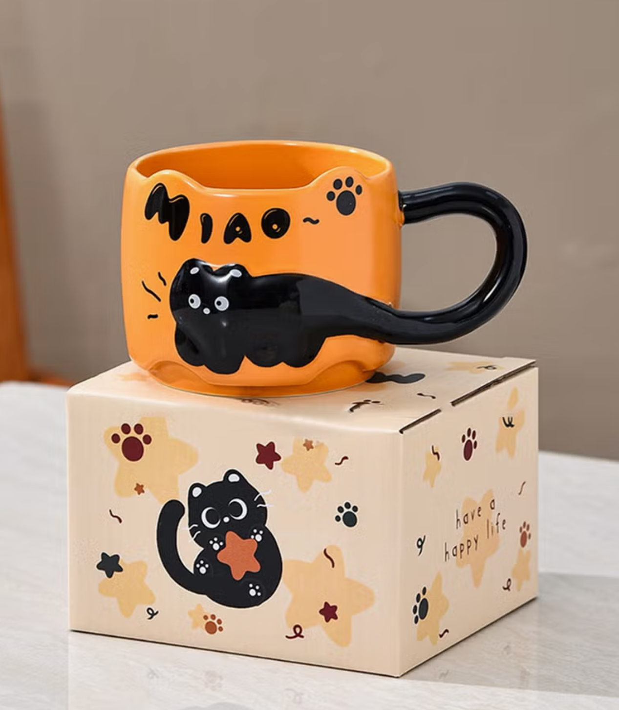 ماگ سرامیکی با طرح گربه کوچک سیاه، مناسب برای قهوه، چای و نوشیدنی‌های سرد، مناسب مایکروویو و ماشین ظرف‌شویی، ظرفیت ۳۸۰ میلی‌لیتر.