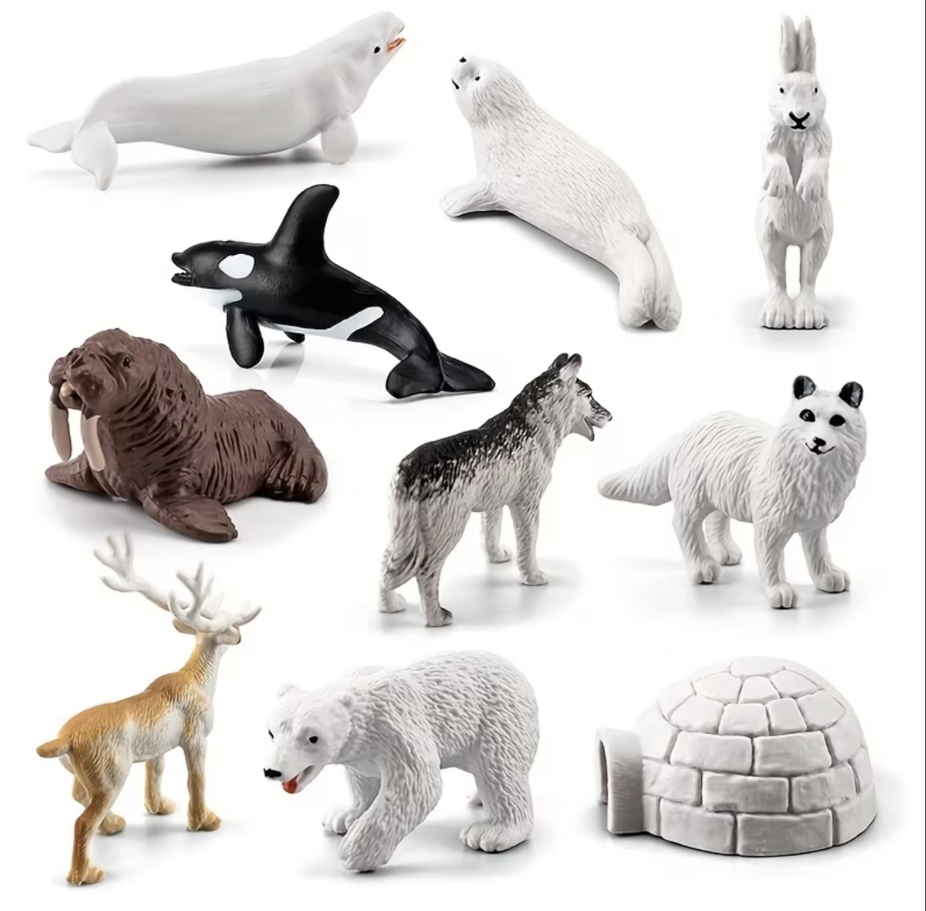 مدلهای شبیهسازی حیوانات قطبی شامل خرگوش قطبی، روباه قطبی، نهنگ قاتل، بلوگا، گوزن شمالی، هاسکی، خرس قطبی و تزئینات ایگلو