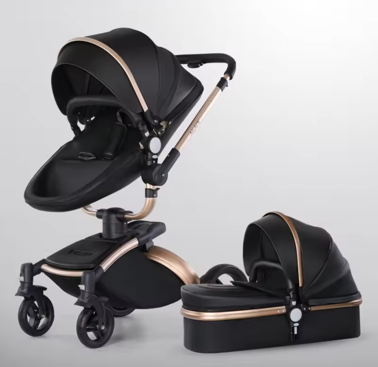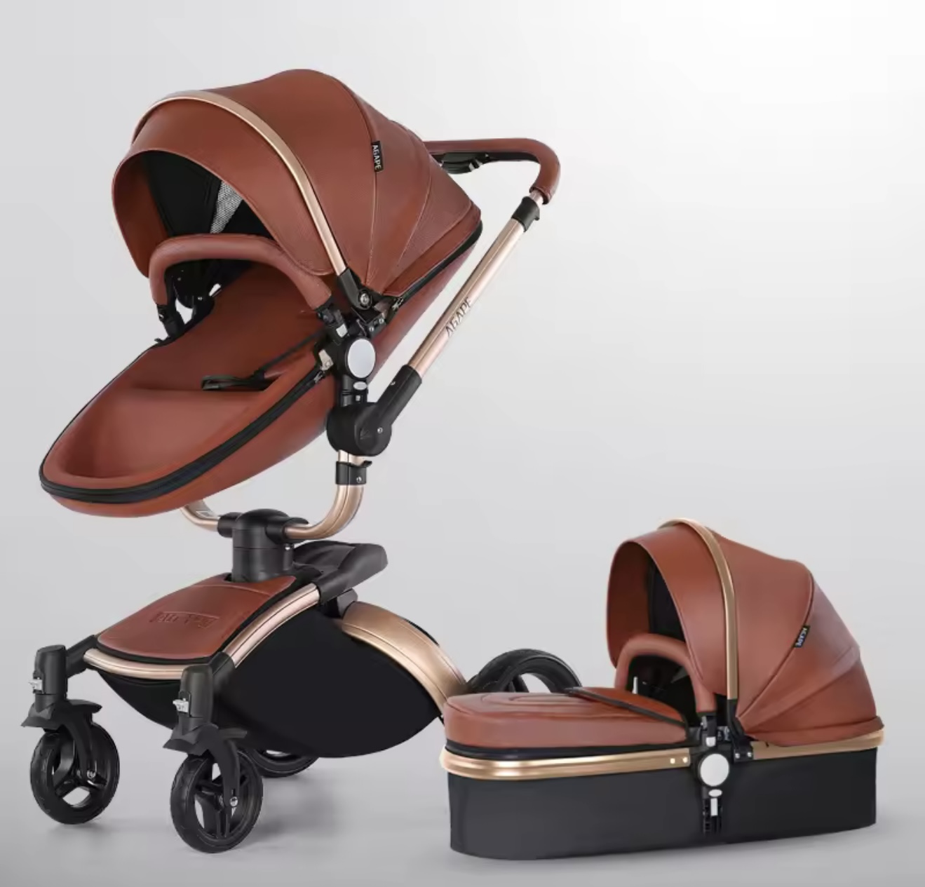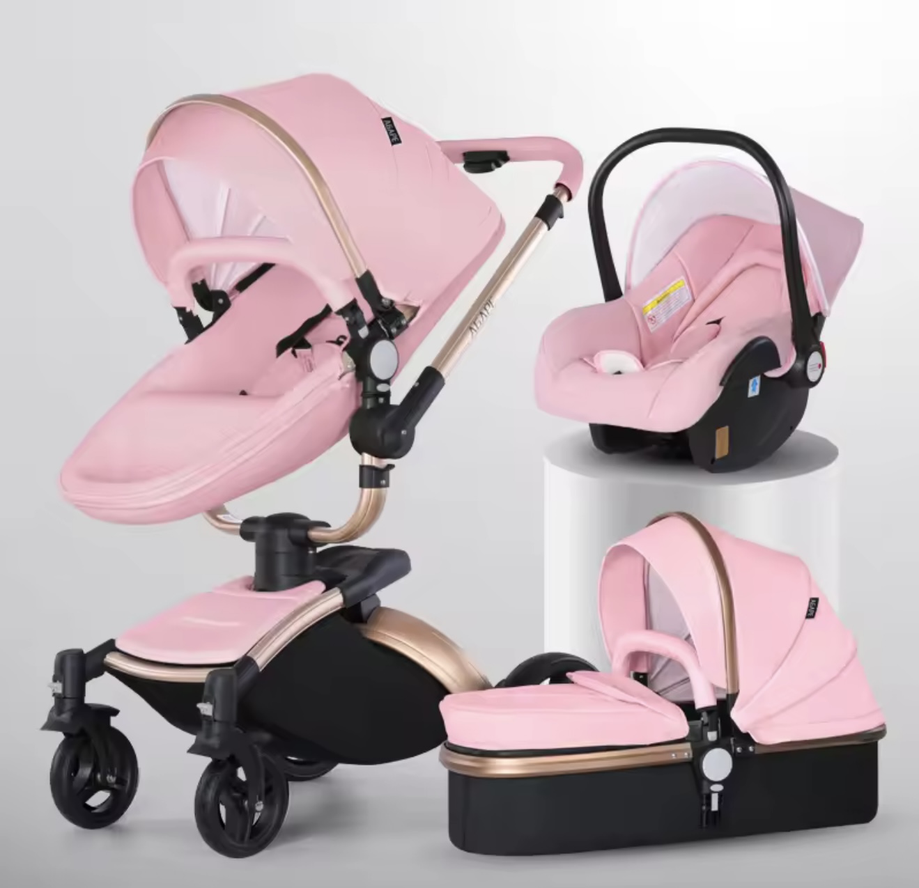 & Free Shippingنوزاد ۳ در ۱، کالسکه چرمی PU با صندلی خودرو