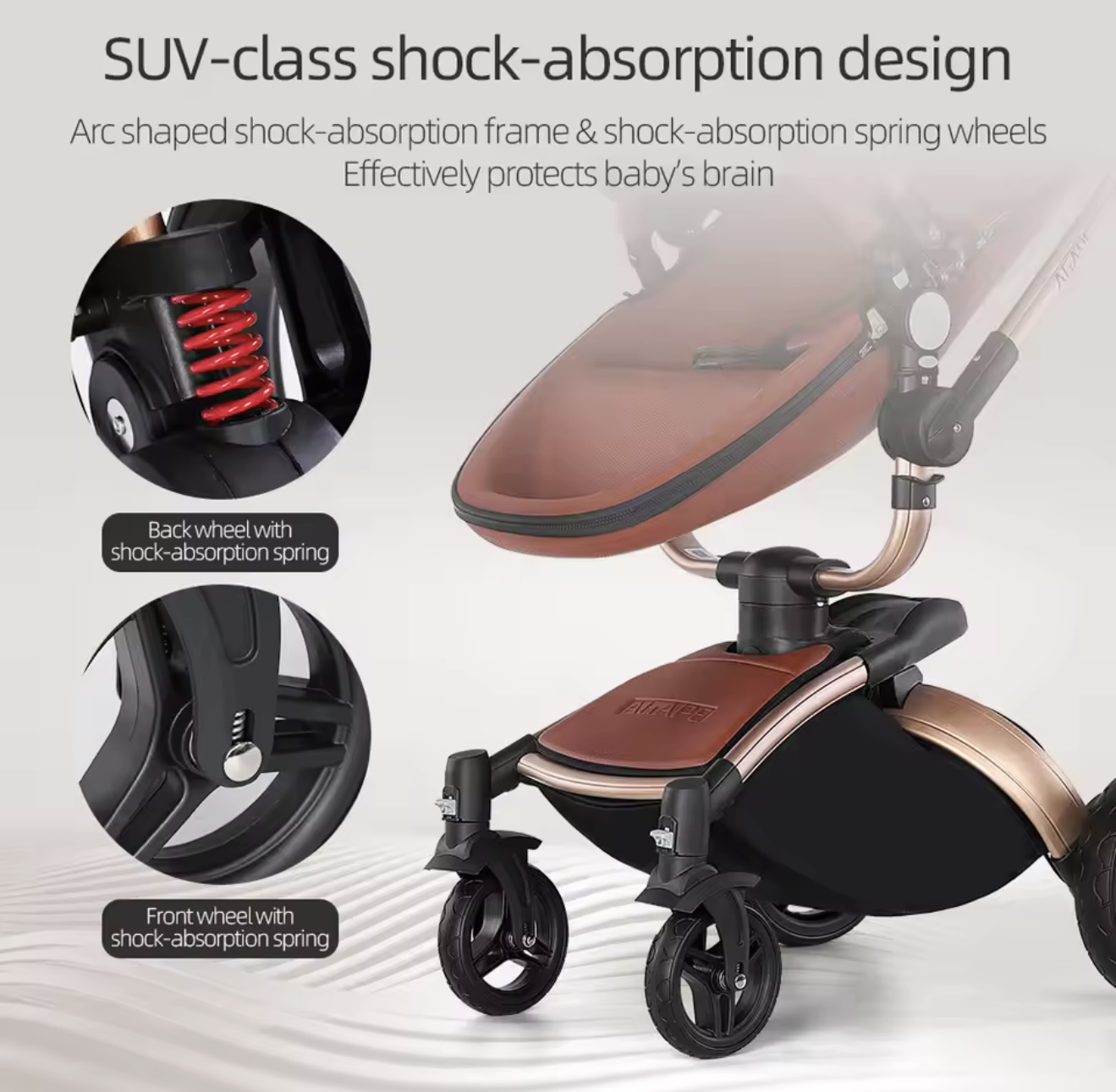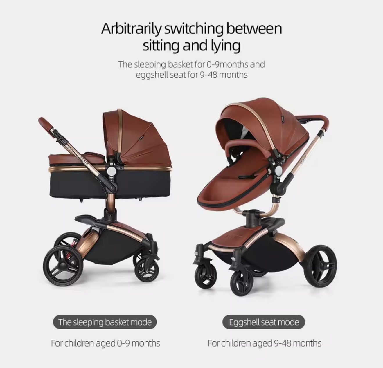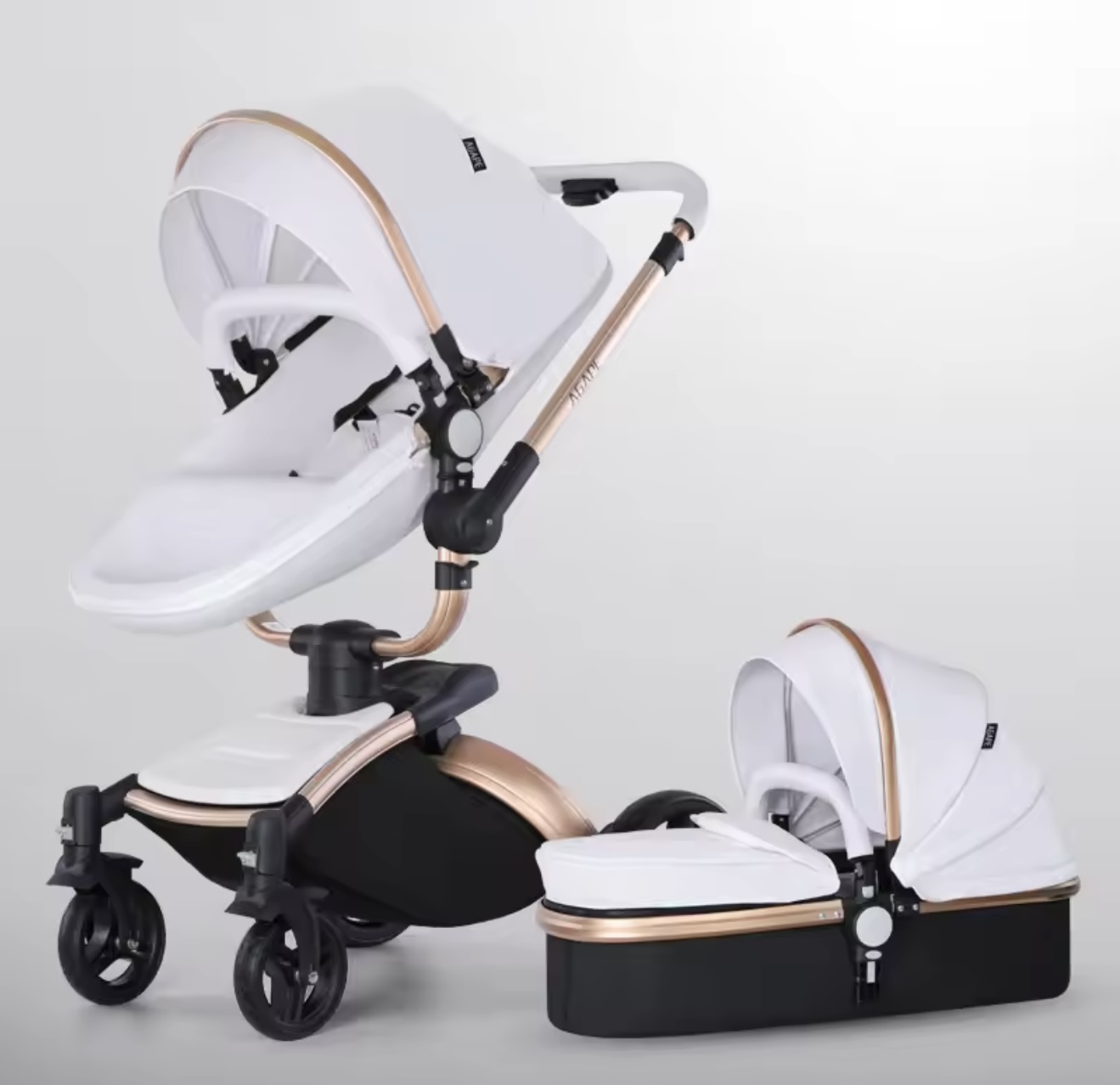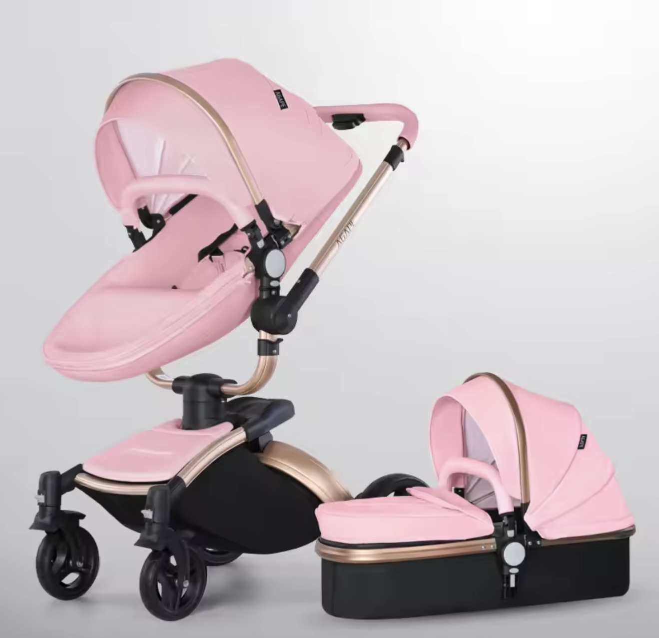 & Free Shippingنوزاد ۳ در ۱، کالسکه چرمی PU با صندلی خودرو