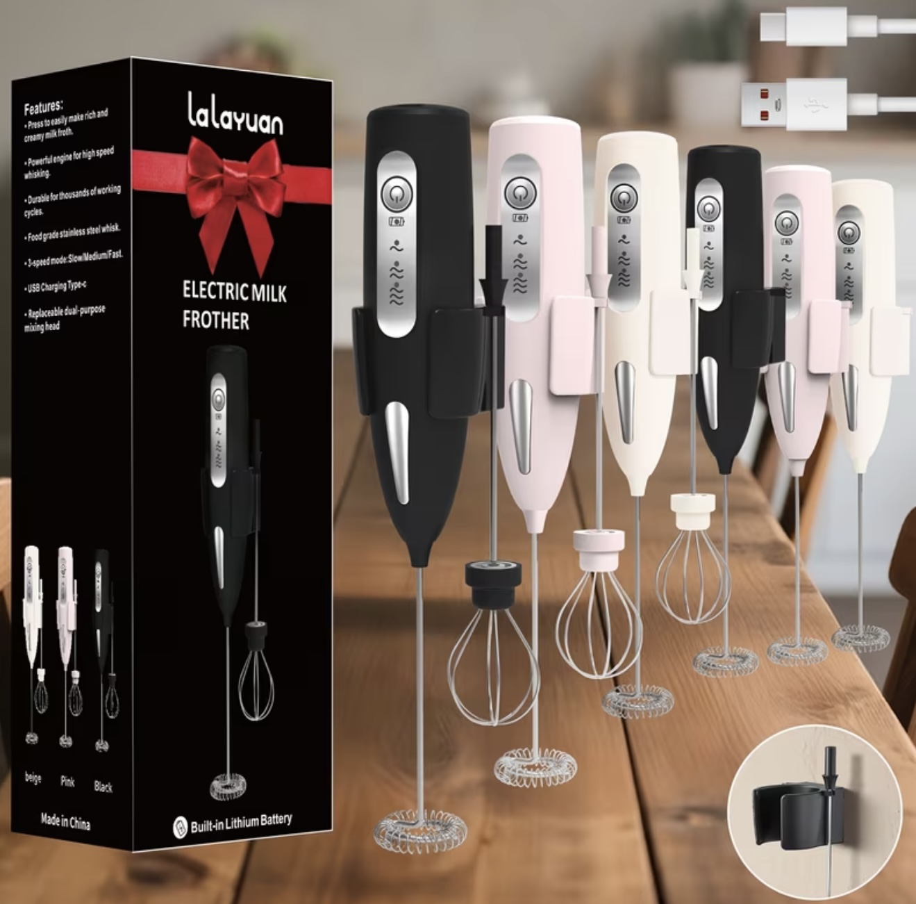 همزن شیر برقی دستی شارژی از طریق USB با ۳ سرعت /کفساز و باترزن تخممرغ، ساخته شده از استیل ضدزنگ ۳۰۴، کمصدا و جمعوجور