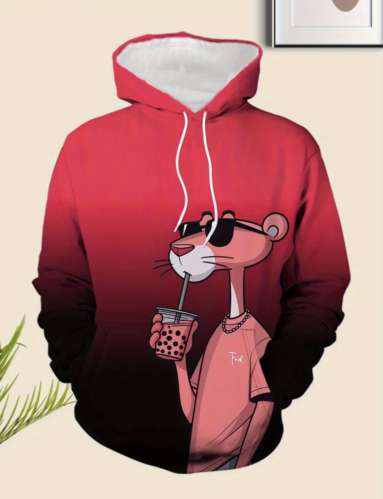 هودی جدید برای دارای طرح چاپ دیجیتال پلنگ صورتی