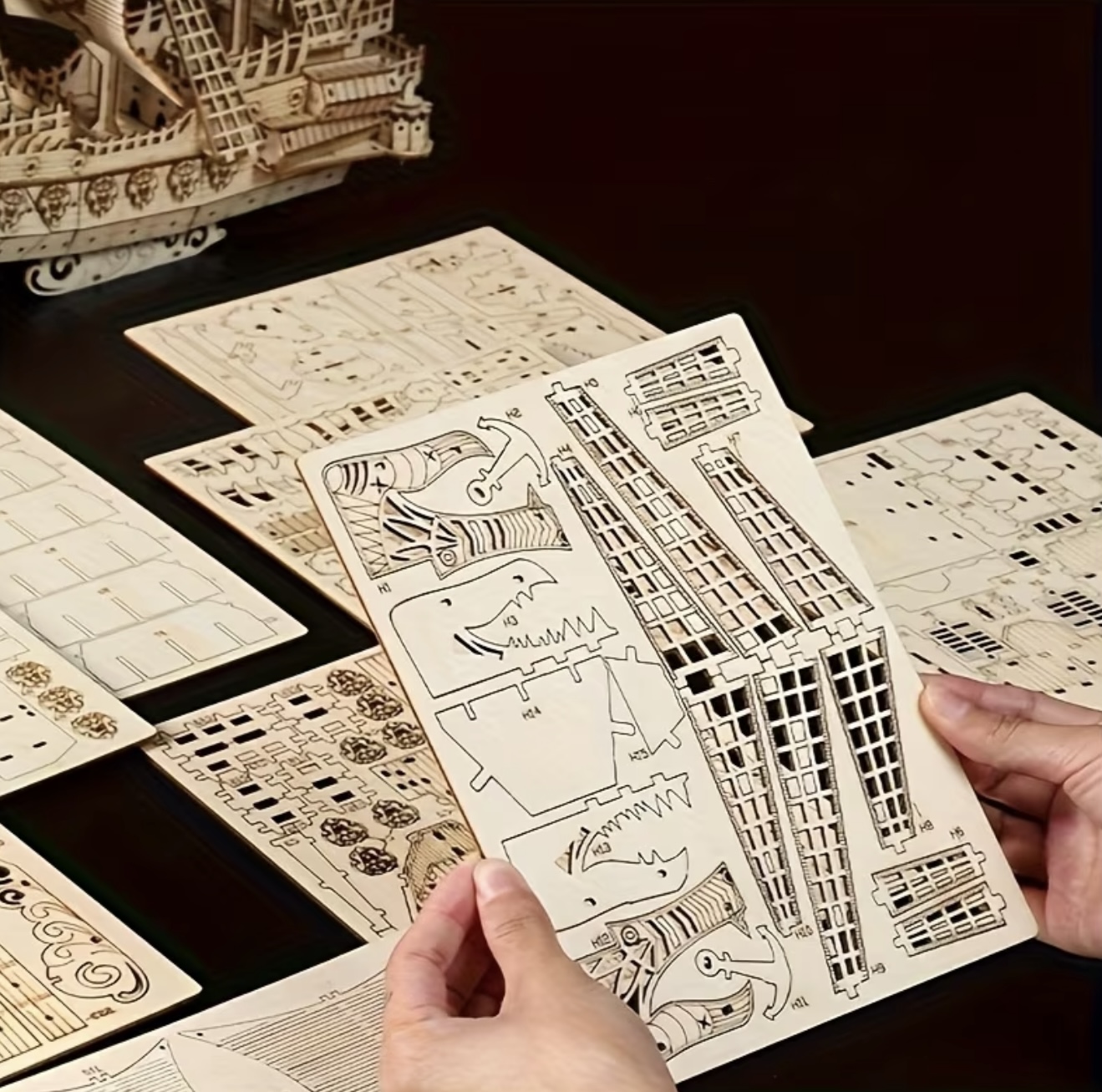 کیت مدل کشتی دزدان دریایی فلایینگ داچمن، کیت ساخت مدل سه‌بعدی کشتی، کیت کاردستی DIY، پازل سه‌بعدی دشوار مناسب برای وقت‌گذرانی خانوادگی، هدیه تولد نفیس، تاکید بر مهارت عملی‌