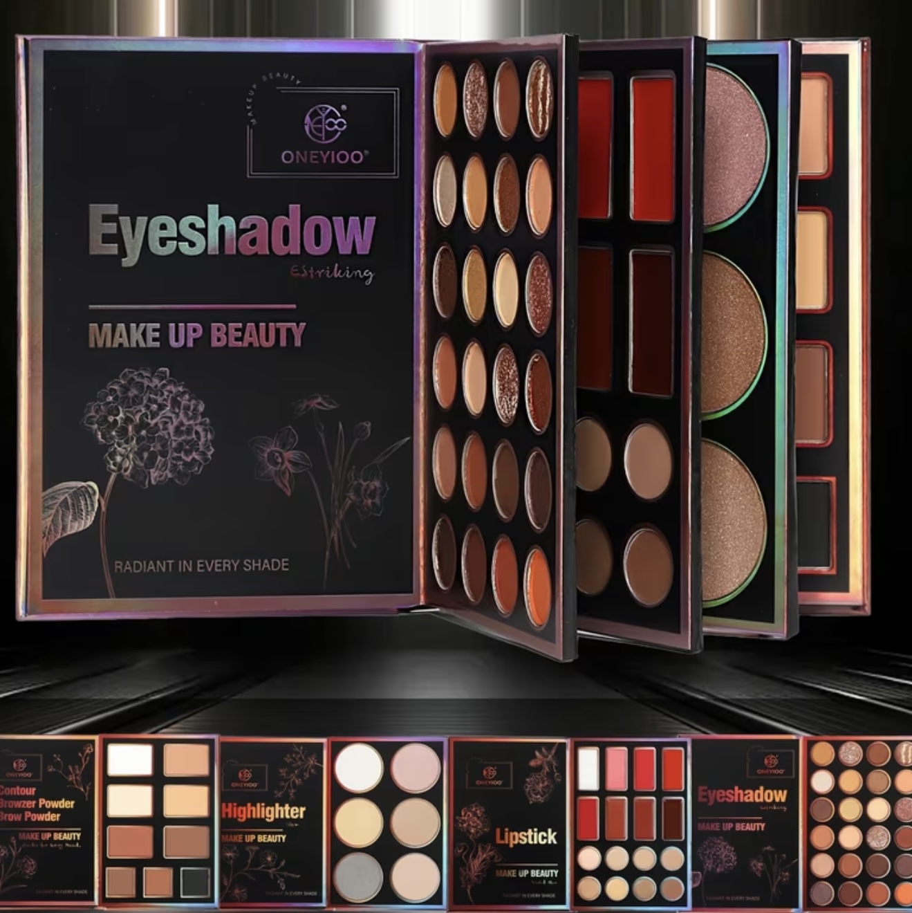 ۲۴ سایه چشم مات و شاین، ۶ برق لب، ۹ رنگ کانتور و کانسیلر، ۶ هایلایتر – ست همه‌کاره‌