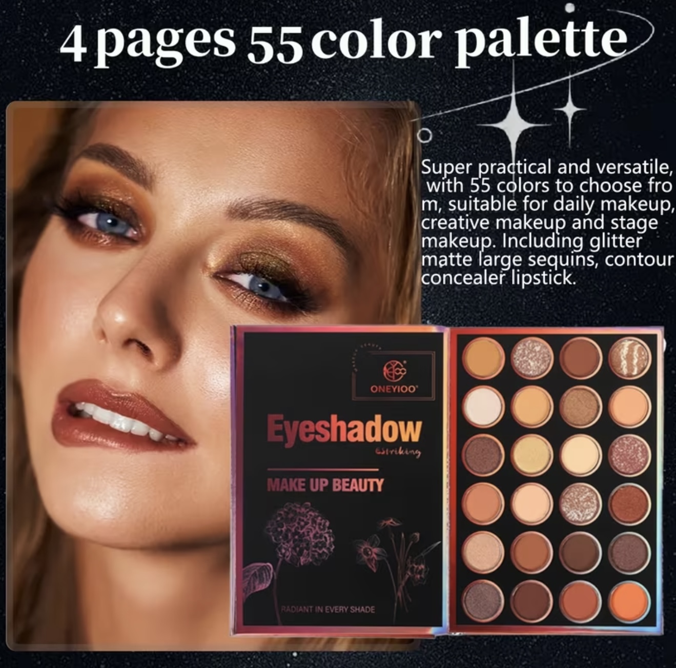 پالت آرایشی ۴ صفحه‌ای با ۵۵ رنگ، شامل: