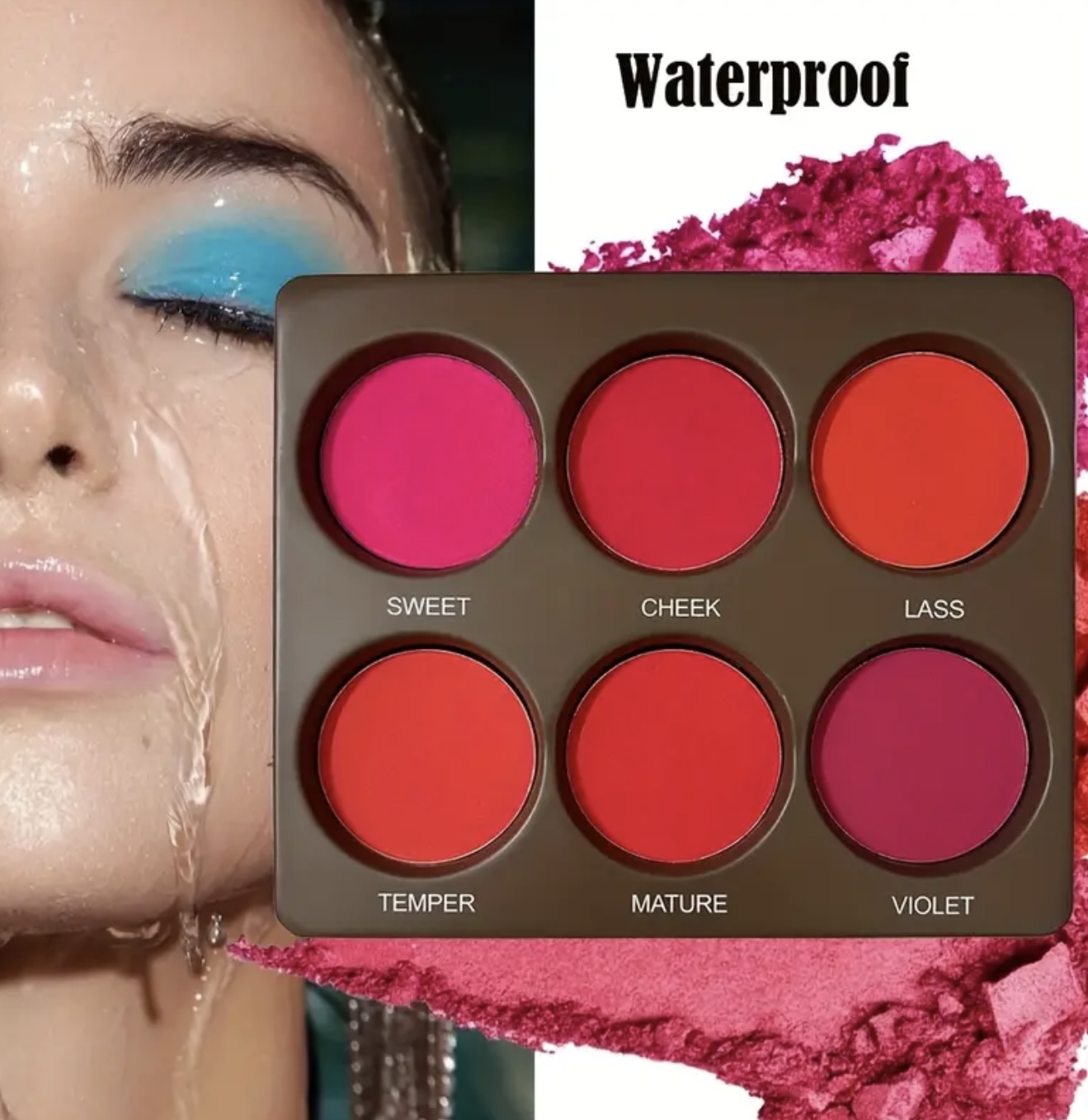پالت رژگونه ۶ رنگ – مات، ضدآب و ماندگار، چندرنگ برای صورت، گونهها و لبها، با پوشش طبیعی، بدون عطر، پارابن و سولفات، مناسب آرایش صورت و گونه