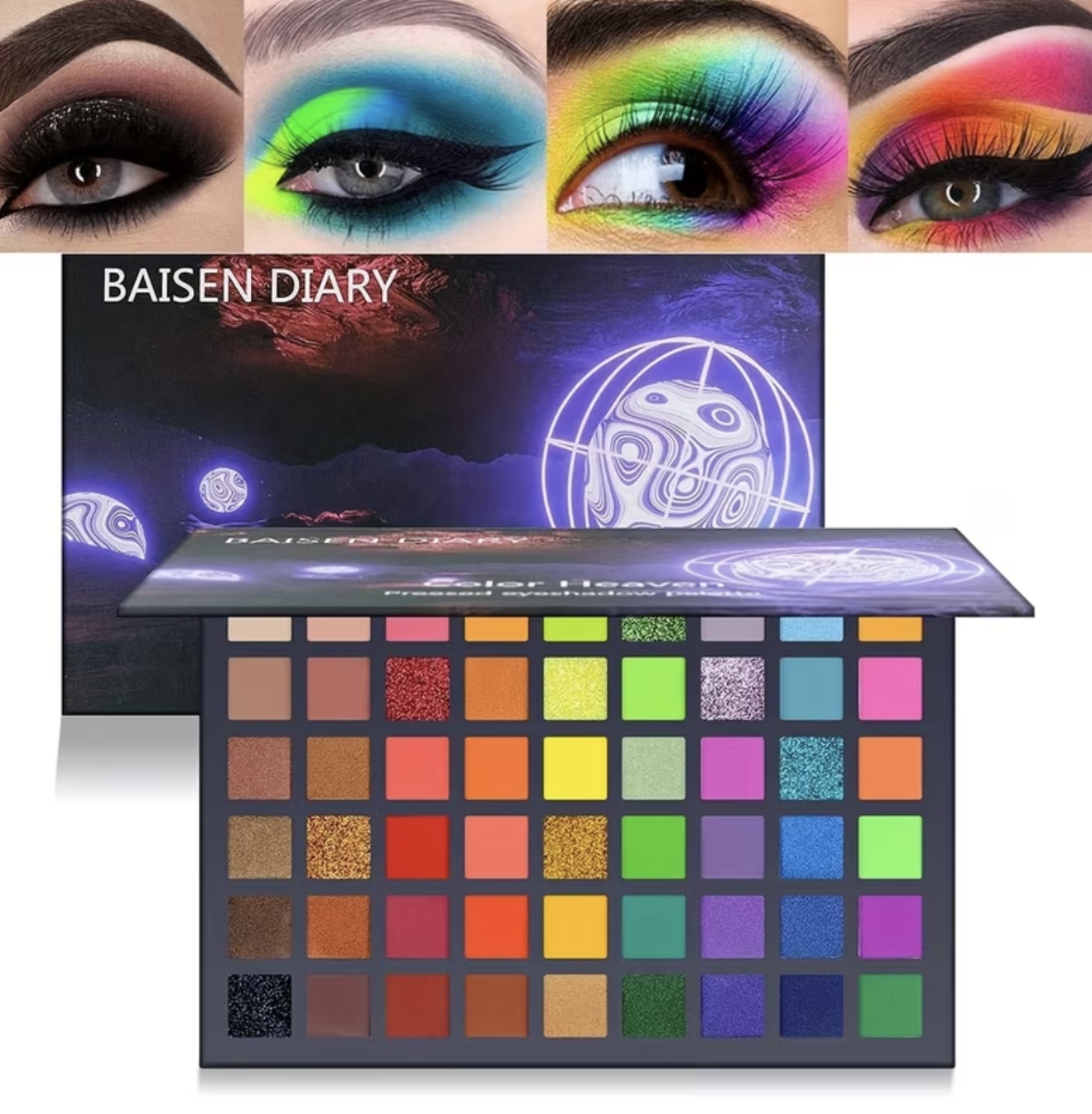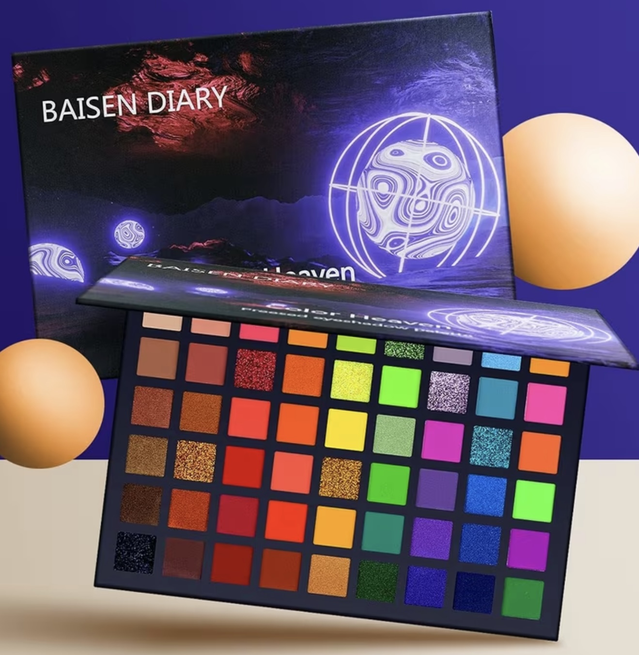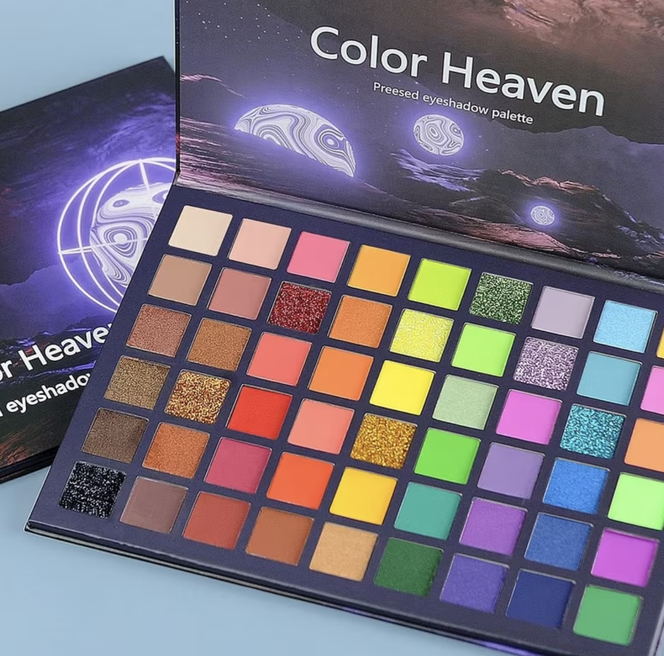 پالت سایه چشم ۵۴ رنگ، شامل رنگهای نئون، براق (گلیتری) و مات، طیف نود و طبیعی،