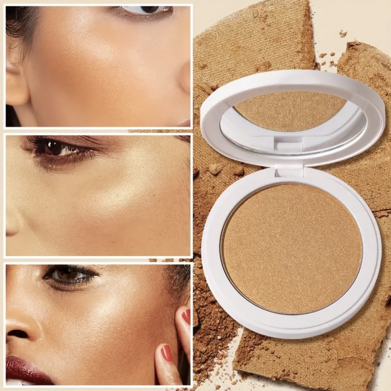 پالت پودری برنزر HECI BEAUTY با ۶ رنگ مات و شاین – جلوه آفتابگرفته نرم و ماندگار، کانتور و هایلایتر ابریشمی، همراه با آینه، پالت آرایشی با بستهبندی شیک