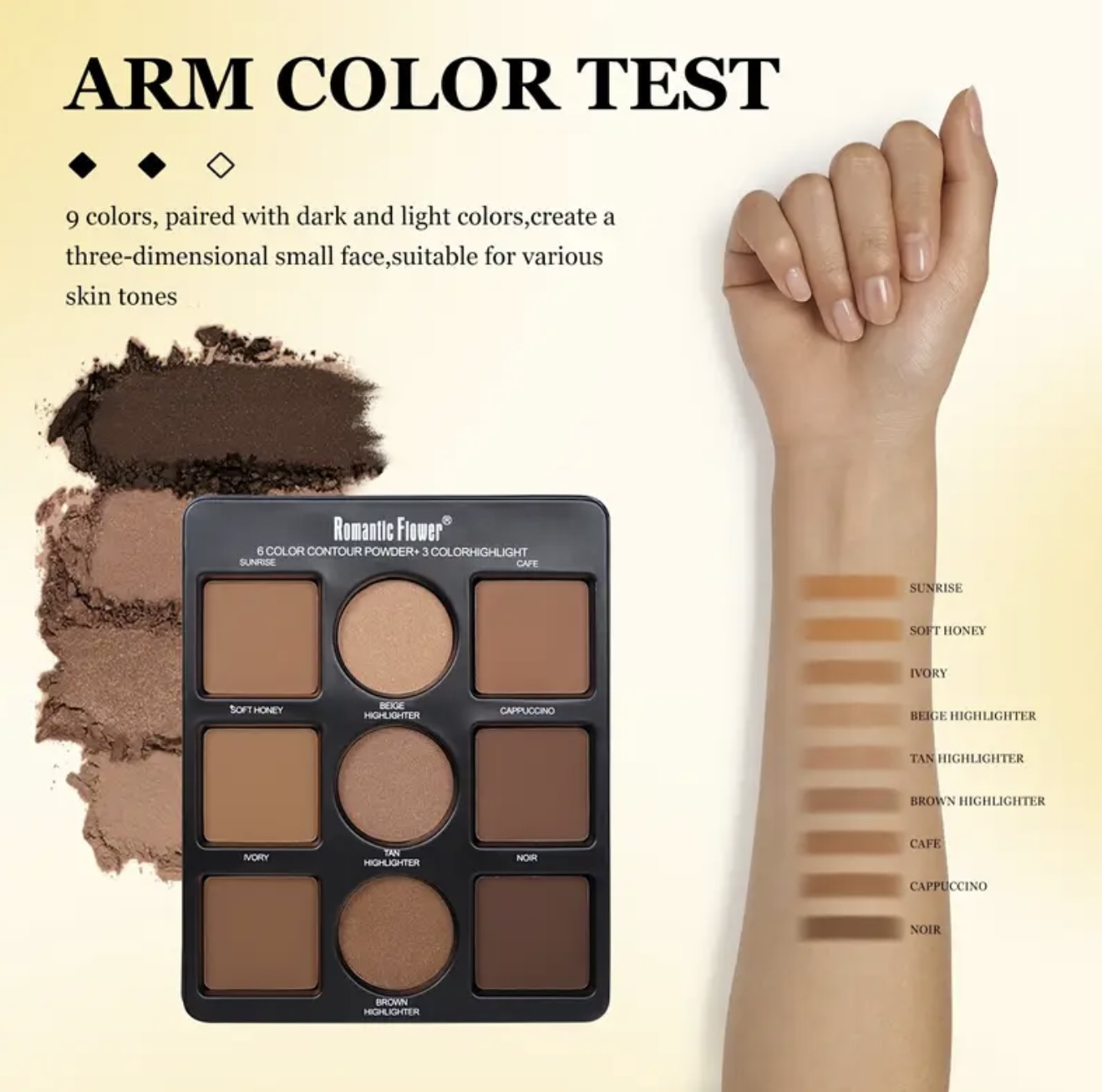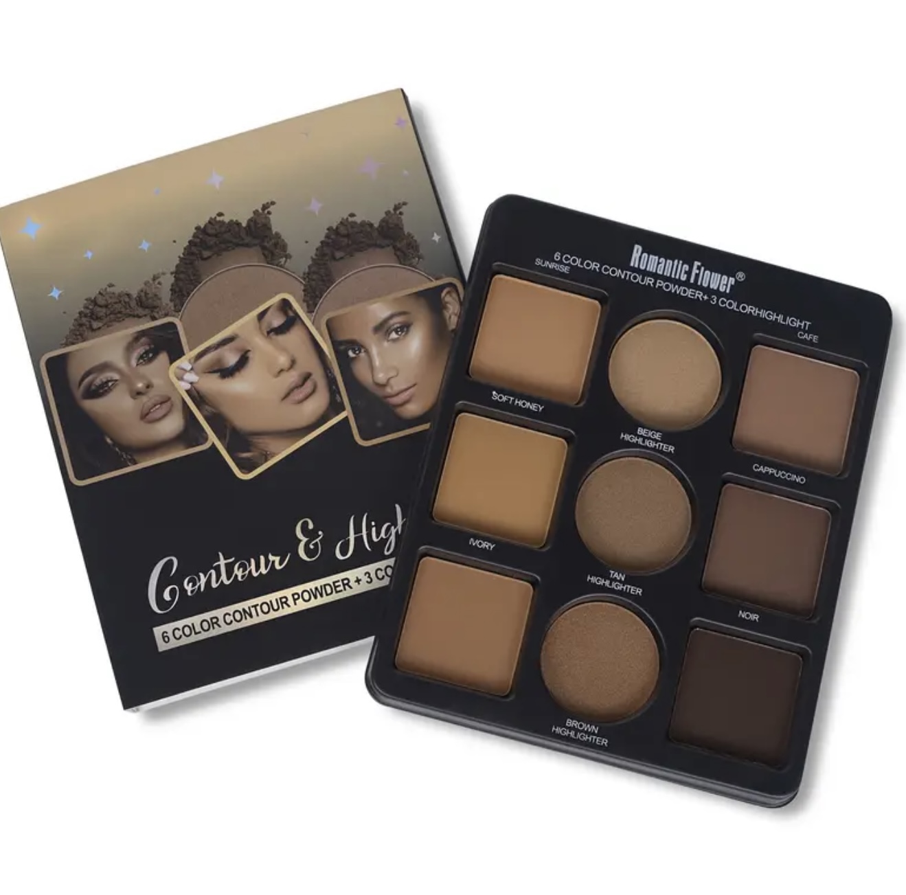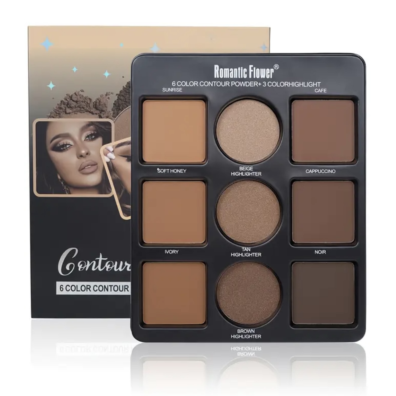 & Free Shippingپالت پودری کانتور و هایلایت ۹ رنگ ROMANTICFLOWER– پوشش مات و ضدآب،