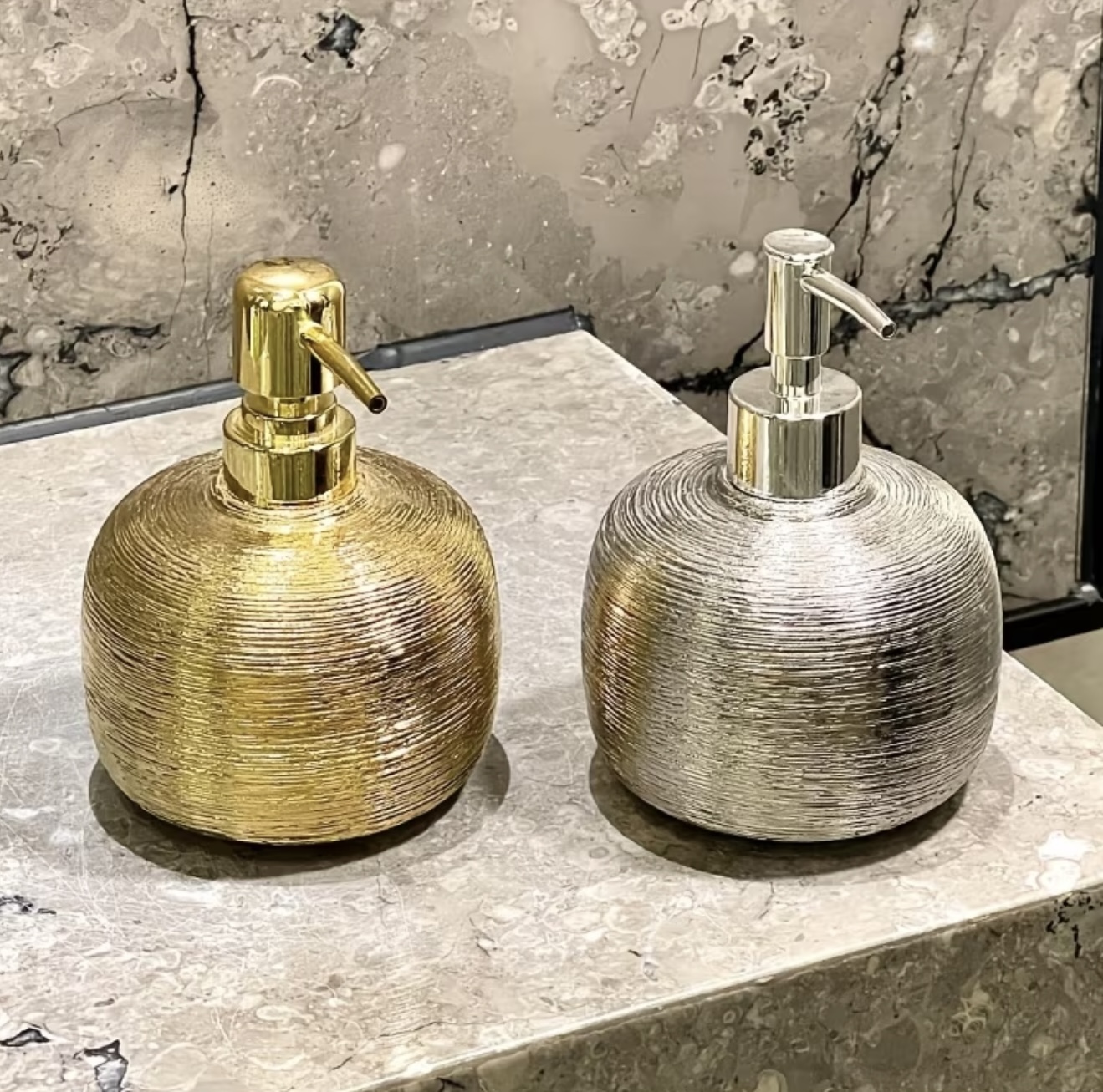 پمپ مایع دستشویی سرامیکی لوکس با پوشش آبکاری شده و طلایی شامپاینی مات