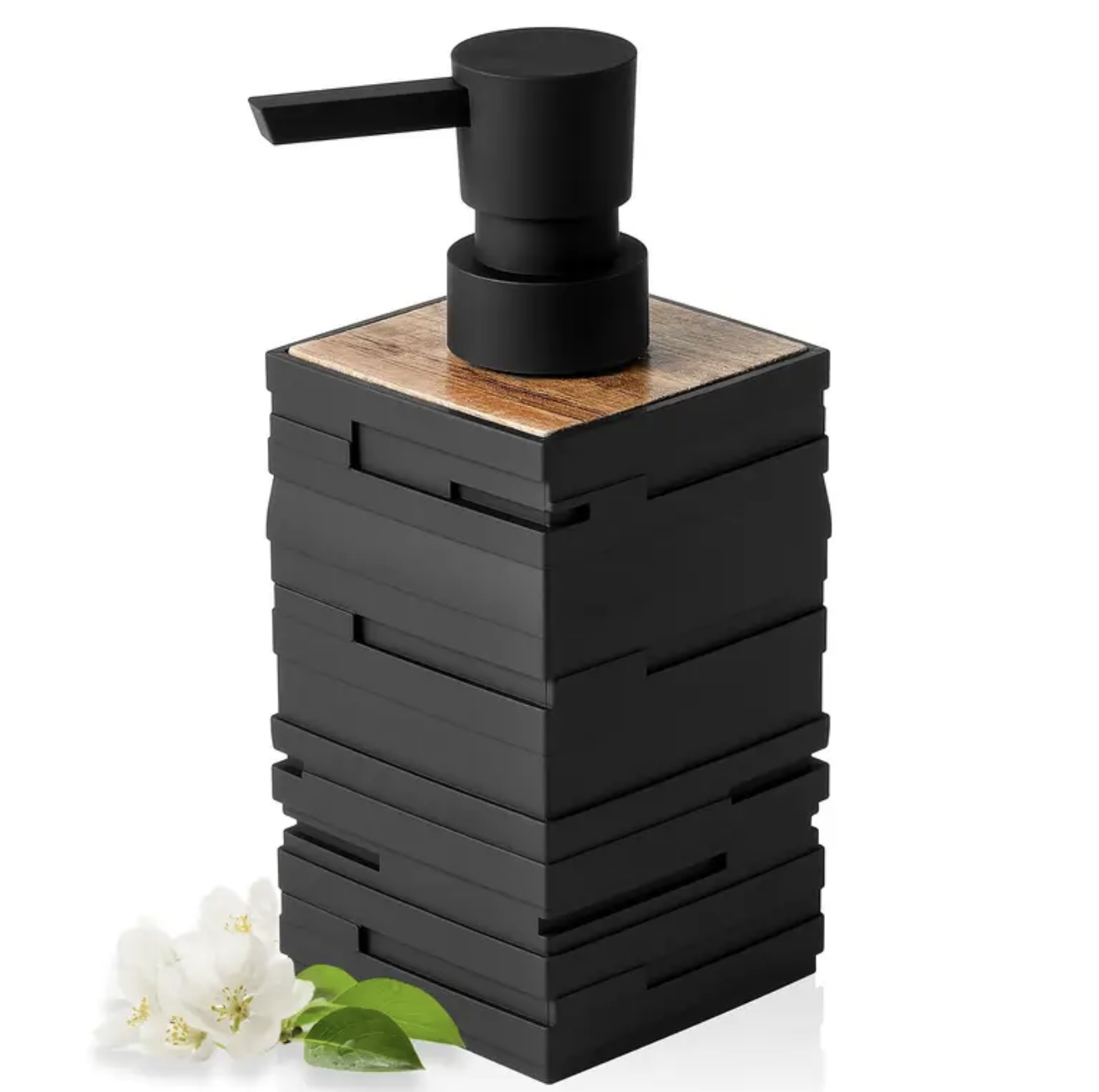 & Free Shippingپمپ مایع صابونی مربعی مشکی مات با تزئینات چوبی تیك
