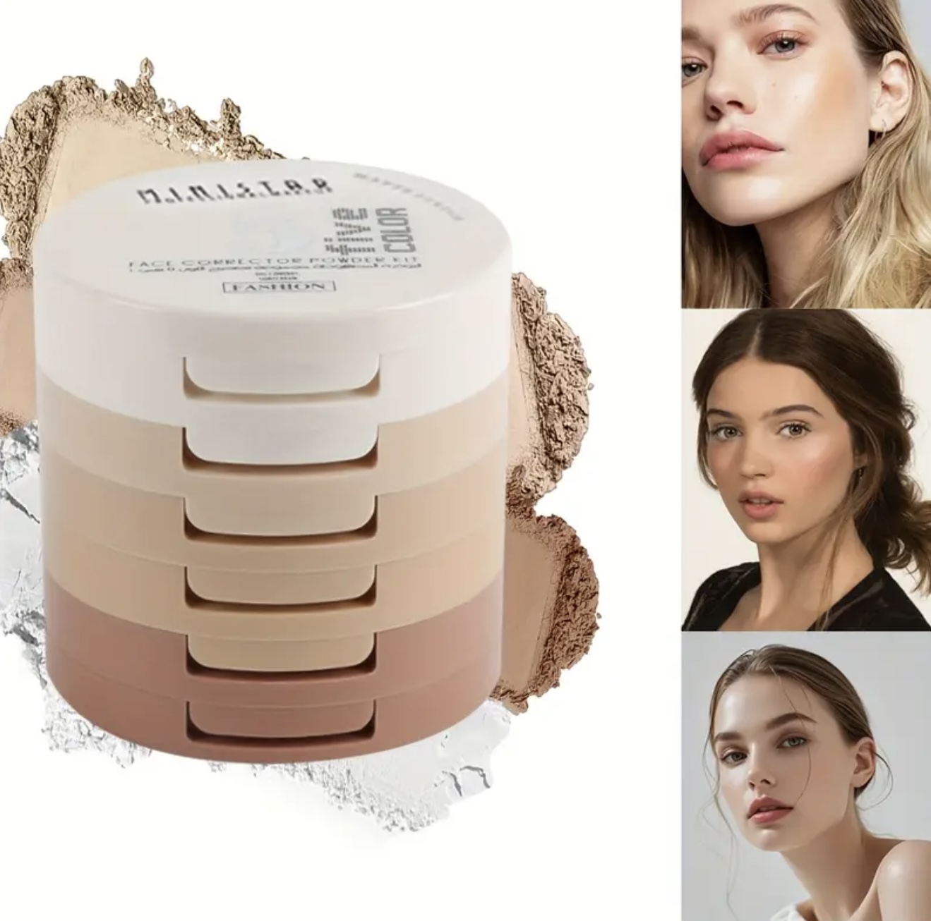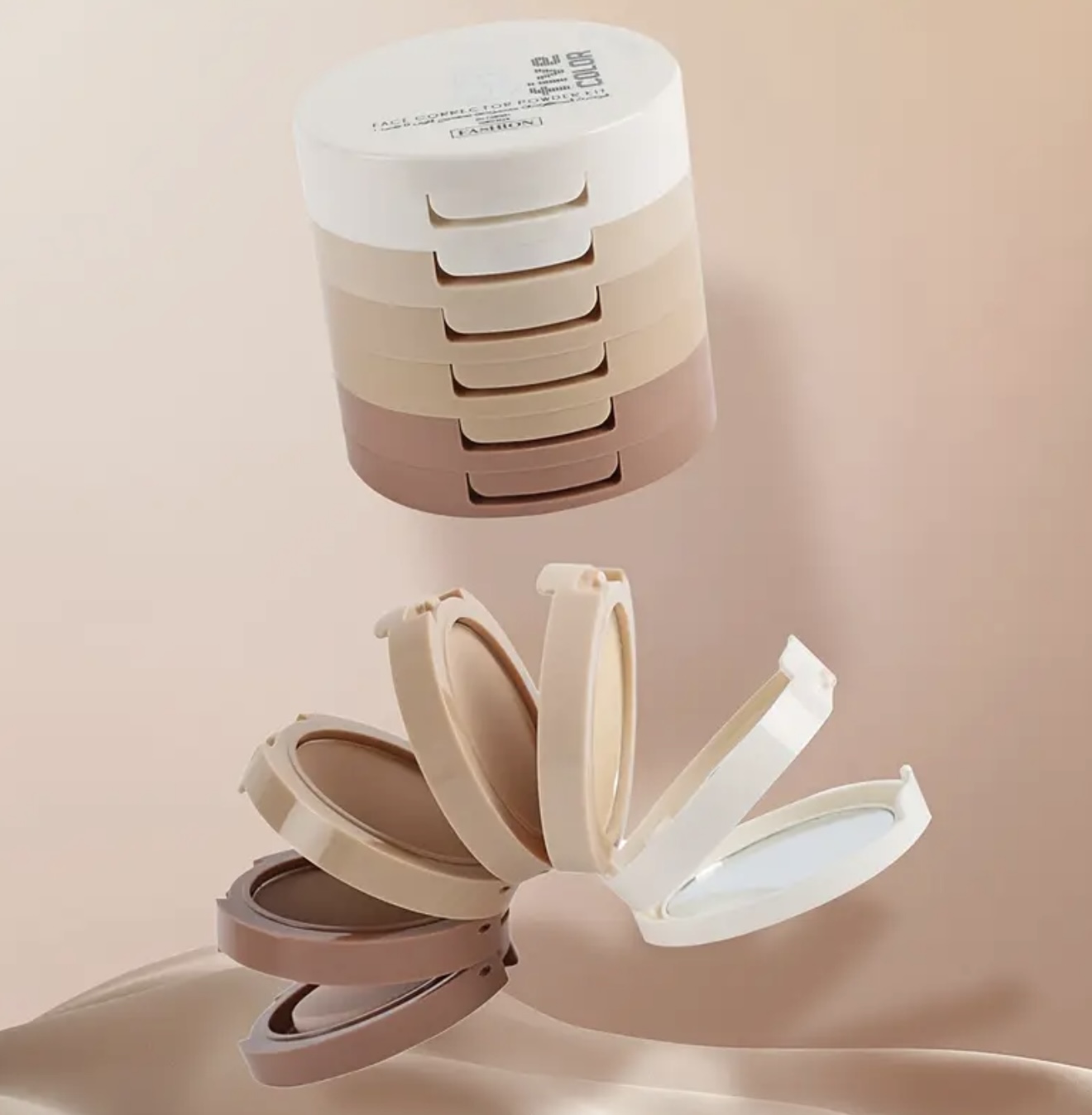 پنکک ۵ لایه ۵ رنگ تصحیح‌کننده رنگ پوست – ۲۴ ساعته، کنترل چربی و روشن‌کننده پوست، پوشش طبیعی، مناسب تمام رنگ‌های پوست