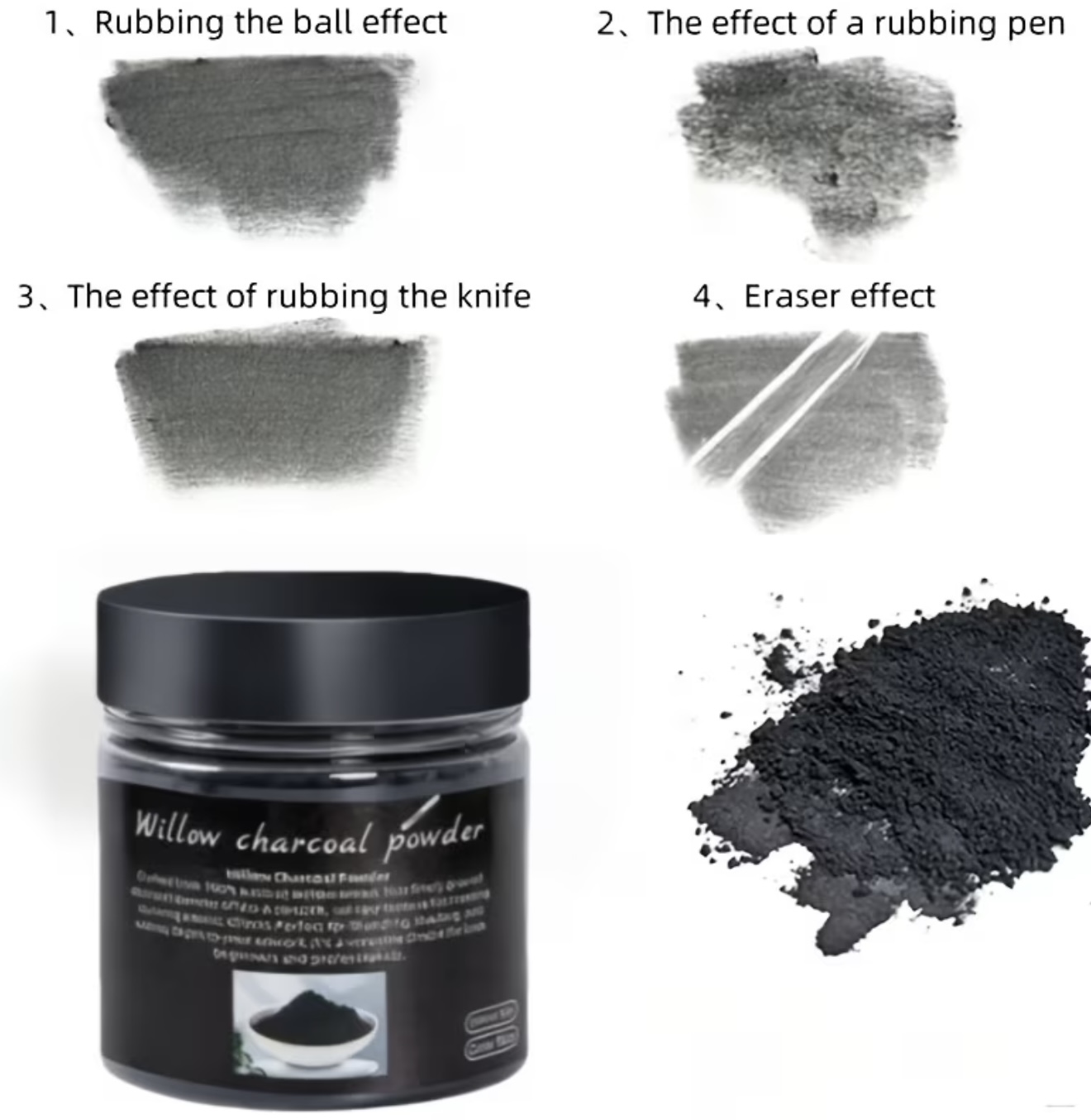& Free Shipping🔹پودر ذغال فوقالعاده ریز برای طراحی – ذغال چوب بید، مداد کربنی سریعگیر برای اسکچ و طراحی هنری، قابل حل در آب و قابل ترکیب با ذغال گرافیتی، همراه با اسفنج 🔹مخلوطکننده، لوازم هنری سبک و چندکاره برای سایهزنی نرم و یکنواخت