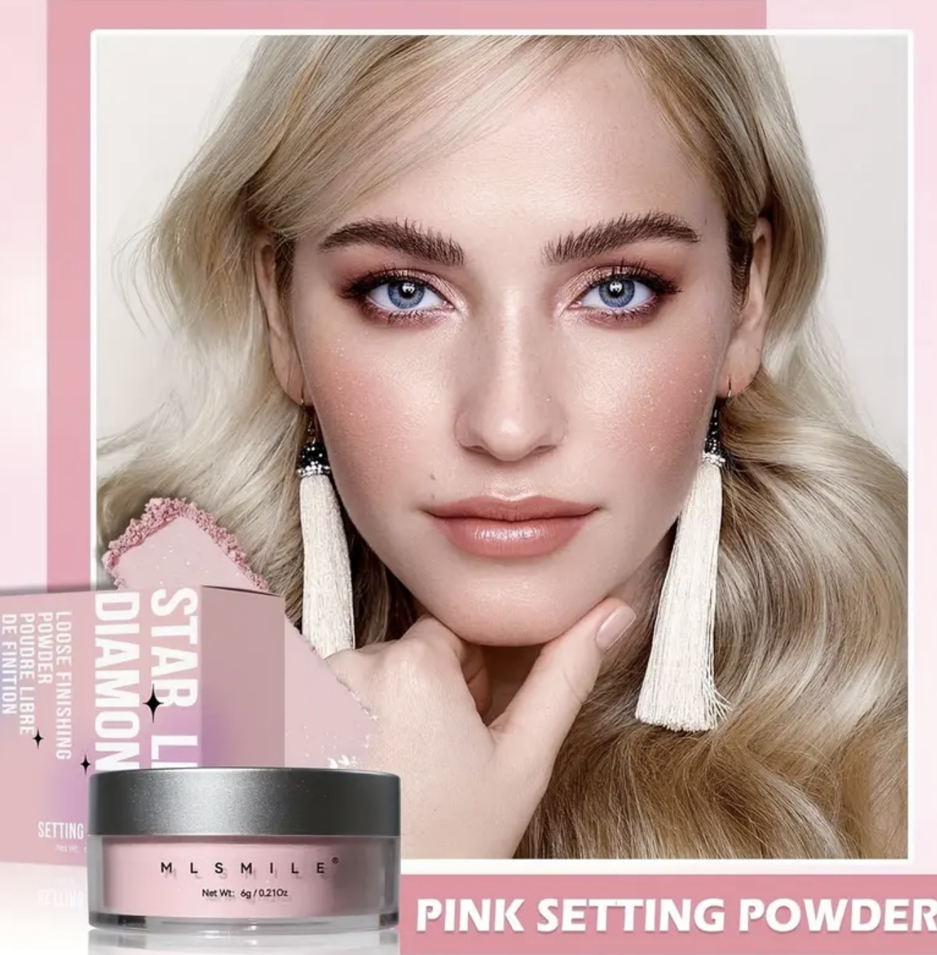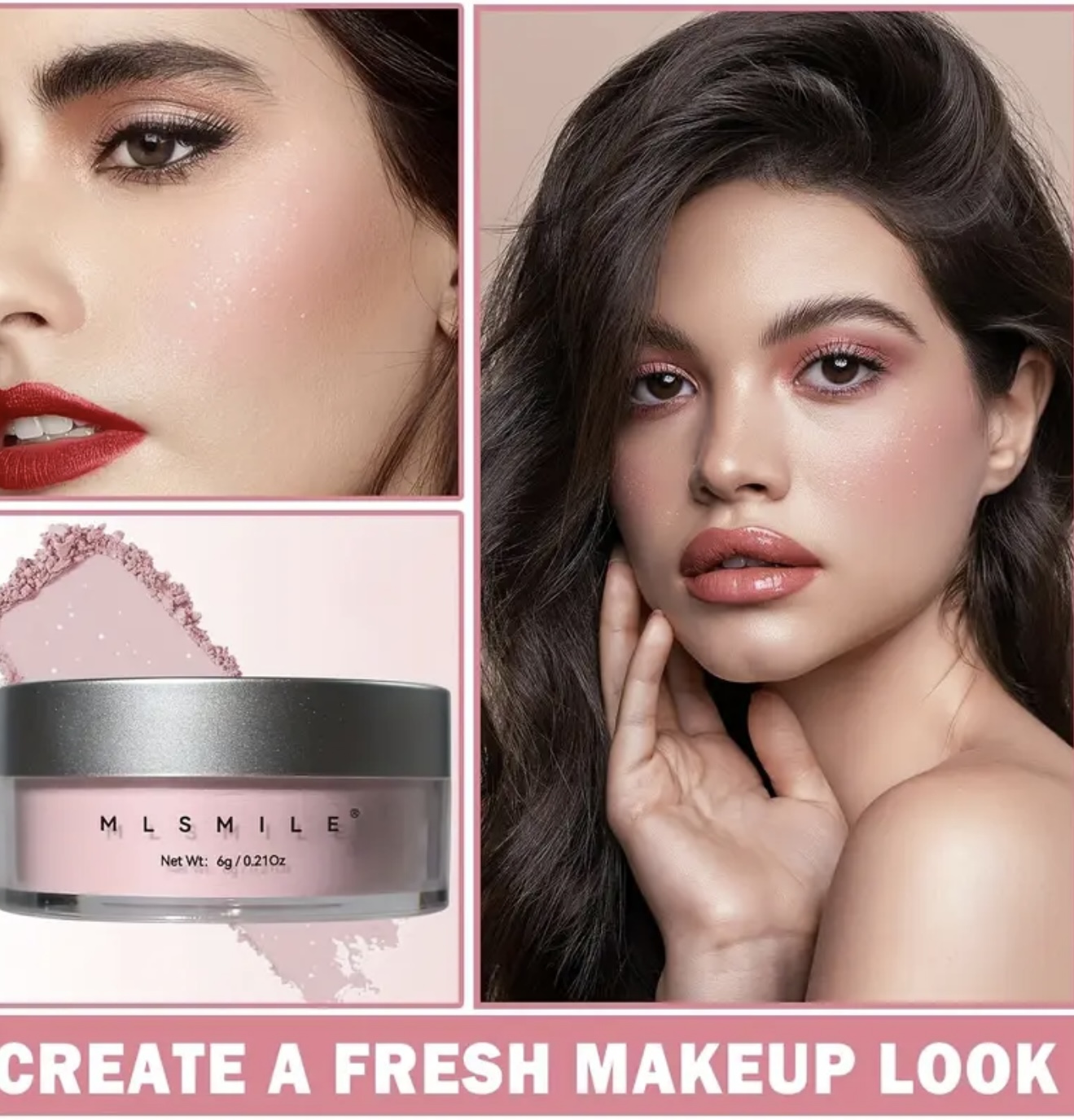 پودر تثبیتکننده آرایش شفاف MLSMILE – ضدآب، کنترلکننده چربی با درخشش ماندگار، هایلایتر صورتی روشن مناسب تمام پوستهای بژ روشن، پوشش متوسط با افکت سافتفوکوس، طراحی کامپکت شیک، محصول آرایشی حرفهای