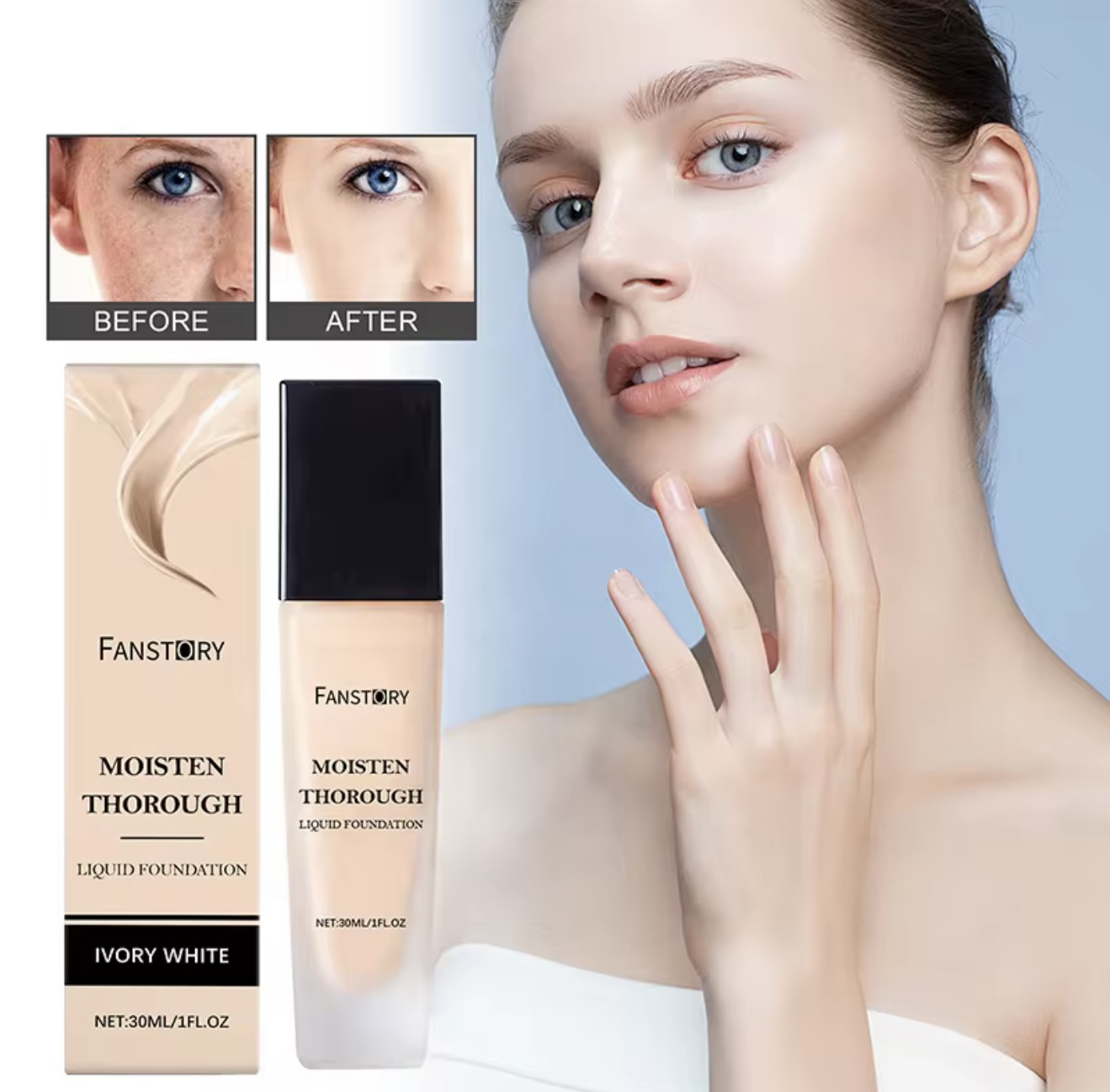 کرم پودر مایع صورت‌ با فرمول سفارشی،حاوی عصاره طبیعی آلوئه ورا و هیالورونیک اسید،روشن‌کننده پوست، ضد آب و مرطوب‌کننده