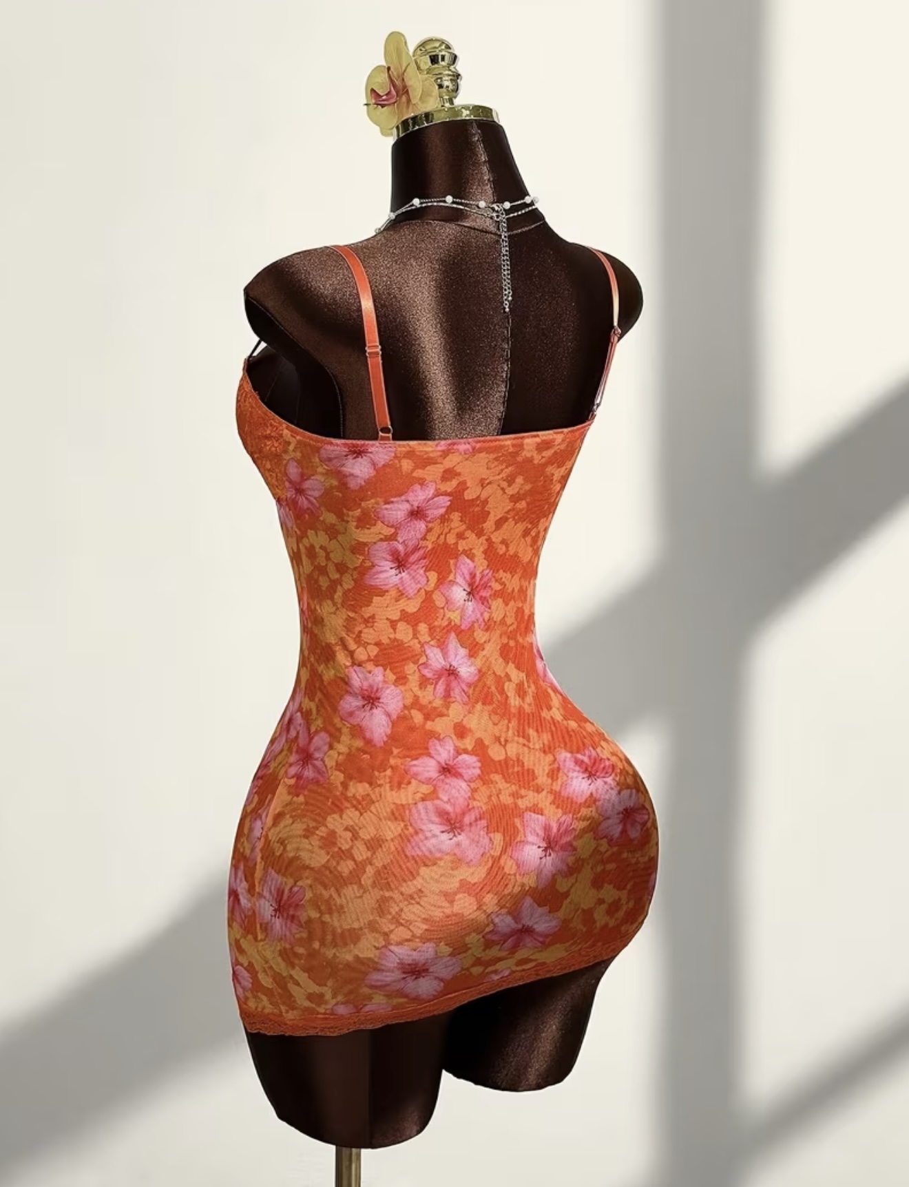 پیراهن بندی با پارچه مش، طرح گلدار، تزئینشده با تور دانتل متضاد و پاپیون