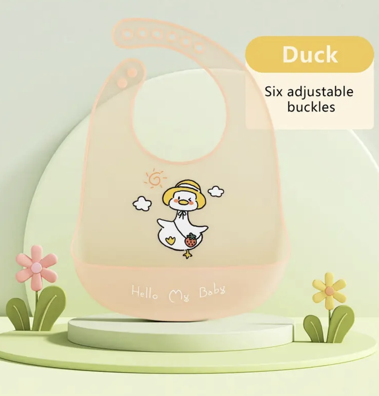 ۱ عدد پیشبند سیلیکونی سبک نوزاد با طراحیهای دوستداشتنی مناسب دختر و پسر، دارای دکمه تنظیم، بادوام و آسانتمیزشو، ایدهآل برای زمان غذا خوردن کودک، از لوازم کاربردی تغذیه نوزاد