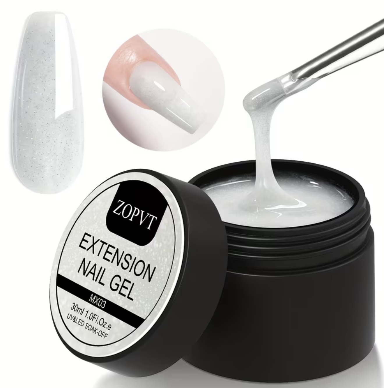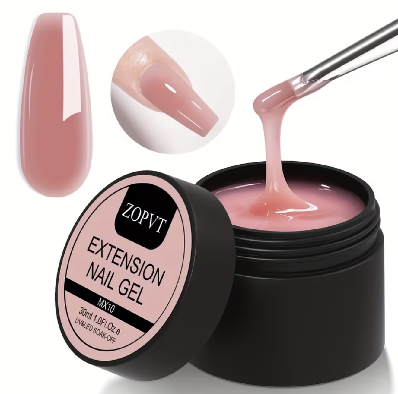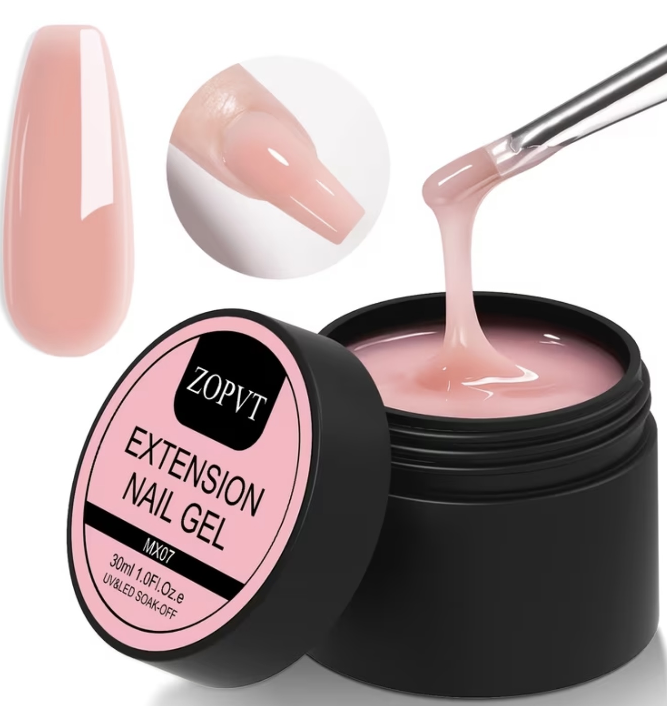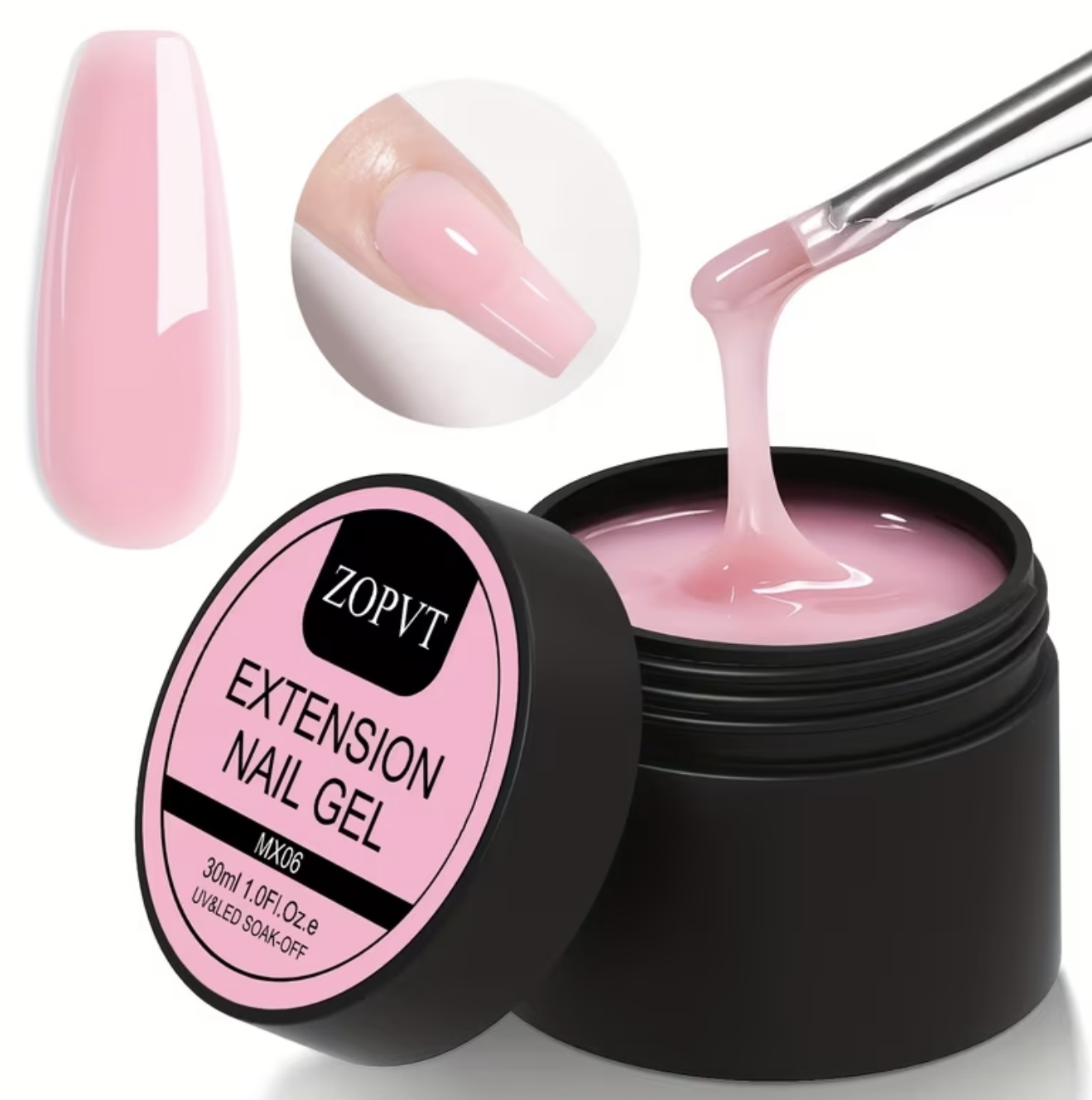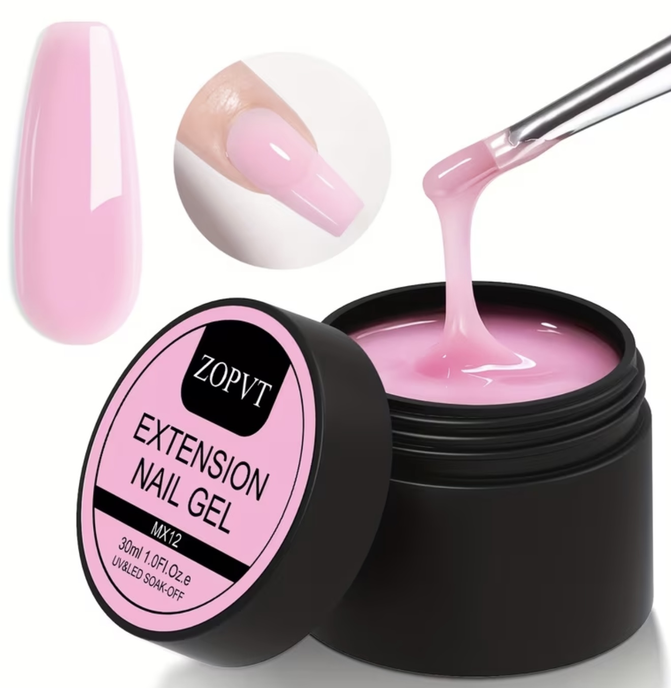 ژل اکستنشن ناخن ۳۰ میلی‌لیتری در ۱۲ رنگ، مناسب کاشت و طراحی ناخن برای استفاده خانگی (DIY) و سالنی، با فرمول حرفه‌ای قابل فرم‌دهی، قابل خشک‌شدن با دستگاه لاک (نِیل لَمپ)، ژل بادوام