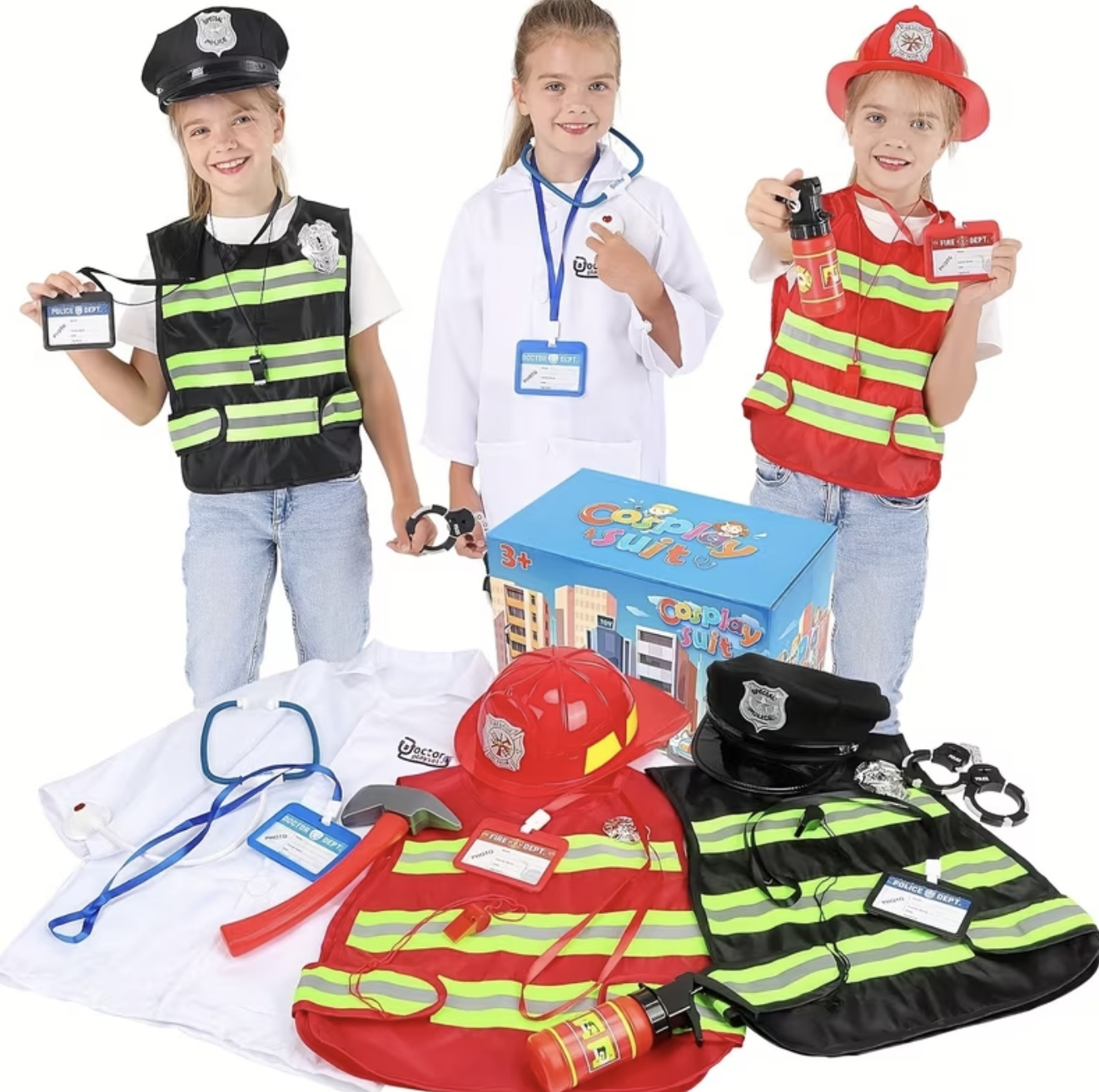 کاستوم ست کامل چند تکه لباس شامل لباس پزشک، پلیس و آتشنشان همراه با لوازم جانبی