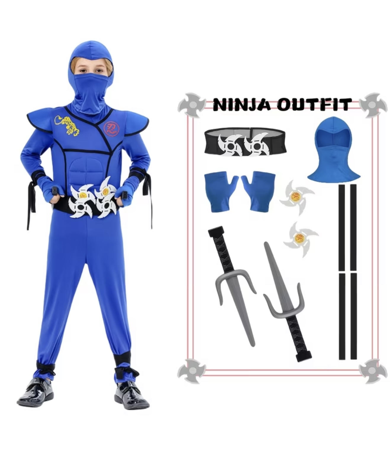 کاستوم لباس نینجا، رامپر آبی همراه با لوازم پلاستیکی و فومی