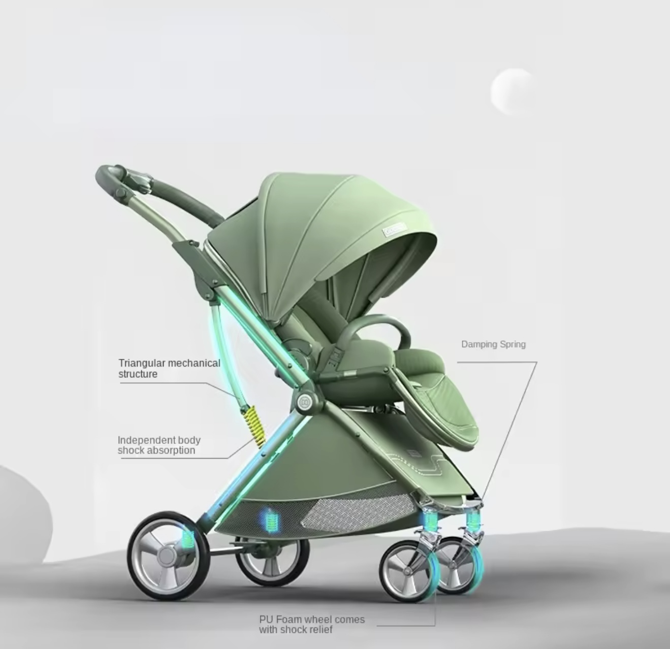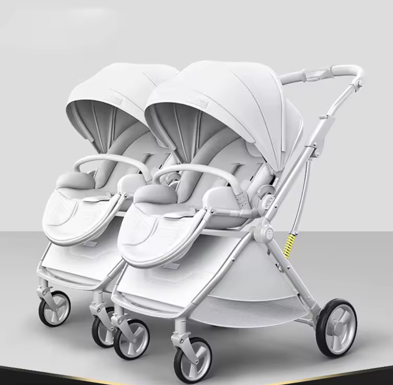 کالسکه دوقلو نوزاد جدید با قابلیت جدا شدن، دارای سیستم جذب ضربه، کالسکه چندحالته سبک و تاشو، امکان نشستن و خوابیدن، با قابلیت حرکت دوطرفه (روبهمادر و روبهجلو