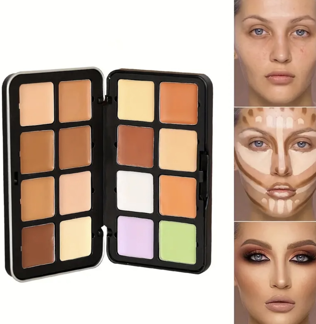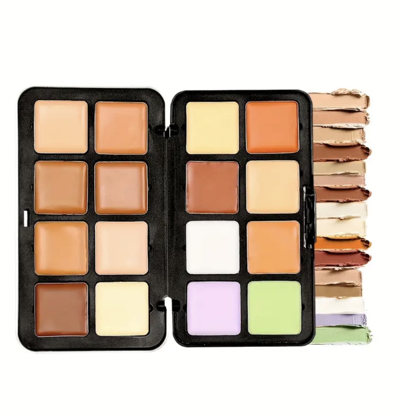 [کانسیلر مات] کانسیلر ۱۶ رنگ در جعبه فلزی – مناسب کانتورینگ، سایه‌های مات، سایه کنار صورت و بینی، پالت آرایش با رنگ‌های طبیعی خاکی