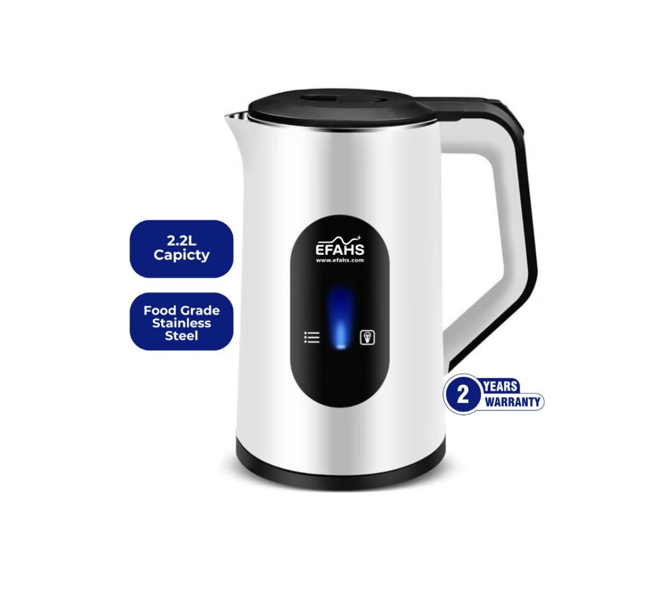 کتری برقی بدون سیم EFAHS با جوشآوری سریع دارای پایه چرخشی ۳۶۰ درجه، خاموشی خودکار ظرفیت: ۲.۲ لیتر توان: ۱۵۰۰ وات رنگ: سفید