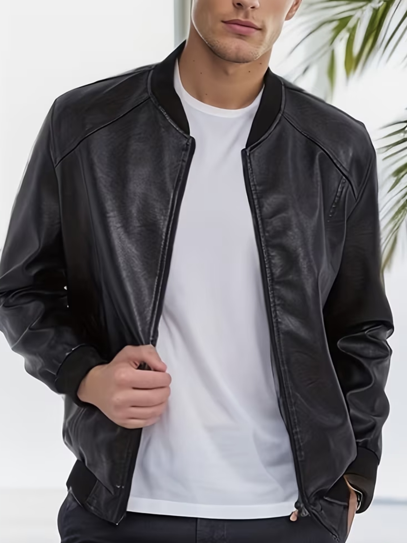 کت مردانه روزمره از چرم مصنوعی با آستر فلِیس، یقه بیسبالی