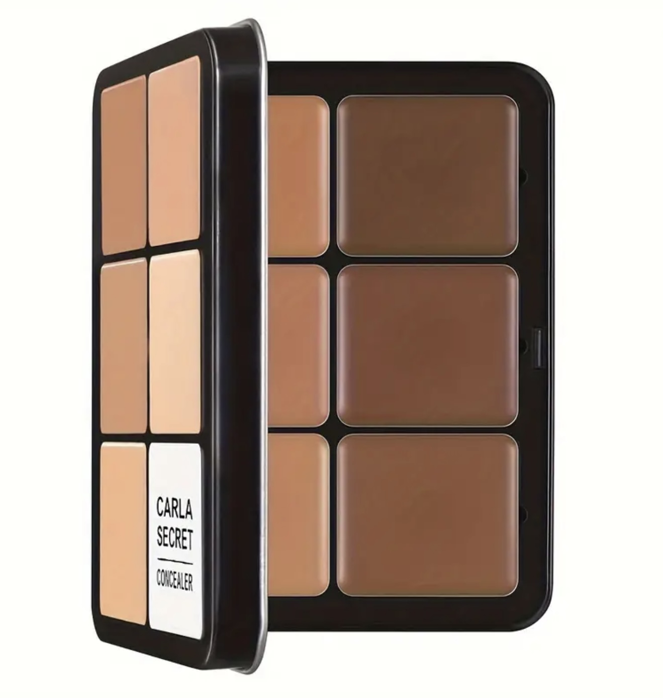 کرم کانسیلر ۱۲ رنگ CARLA با پوشش کامل و قوی – مناسب تناژهای بژ روشن، پوشش ماندگار برای صورت و نقاط خاص، شامل ۱۲ رنگ برای پوشاندن تیرگی دور چشم، لکها و کانتورینگ