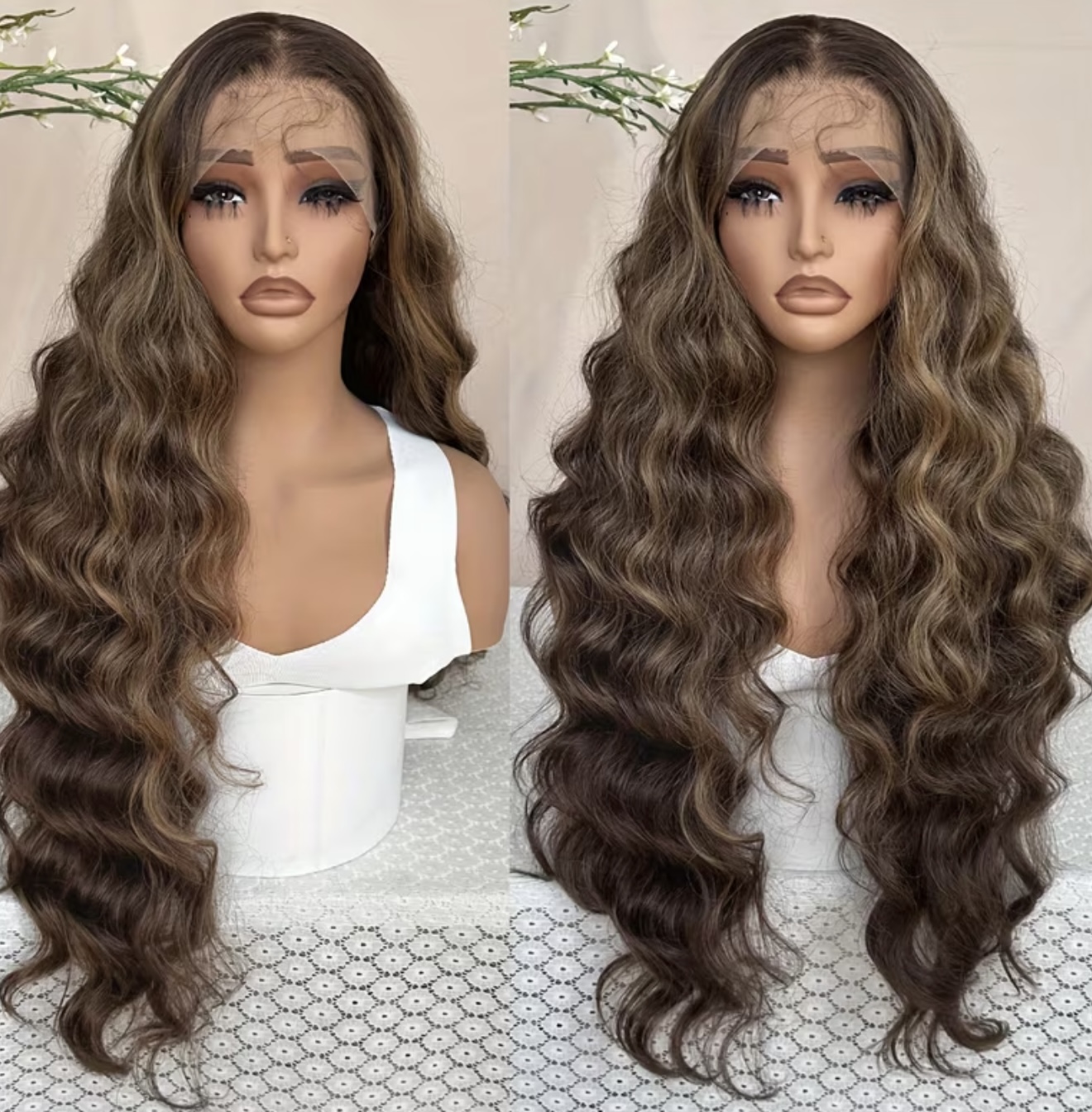کلاه‌گیس جلو تور، موج‌دار بدن به طول ۳۲ اینچ با رنگ بلوند عسلی