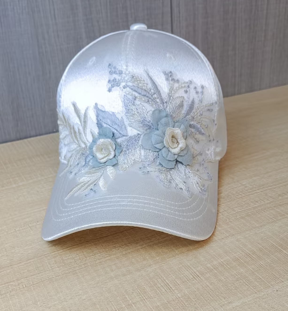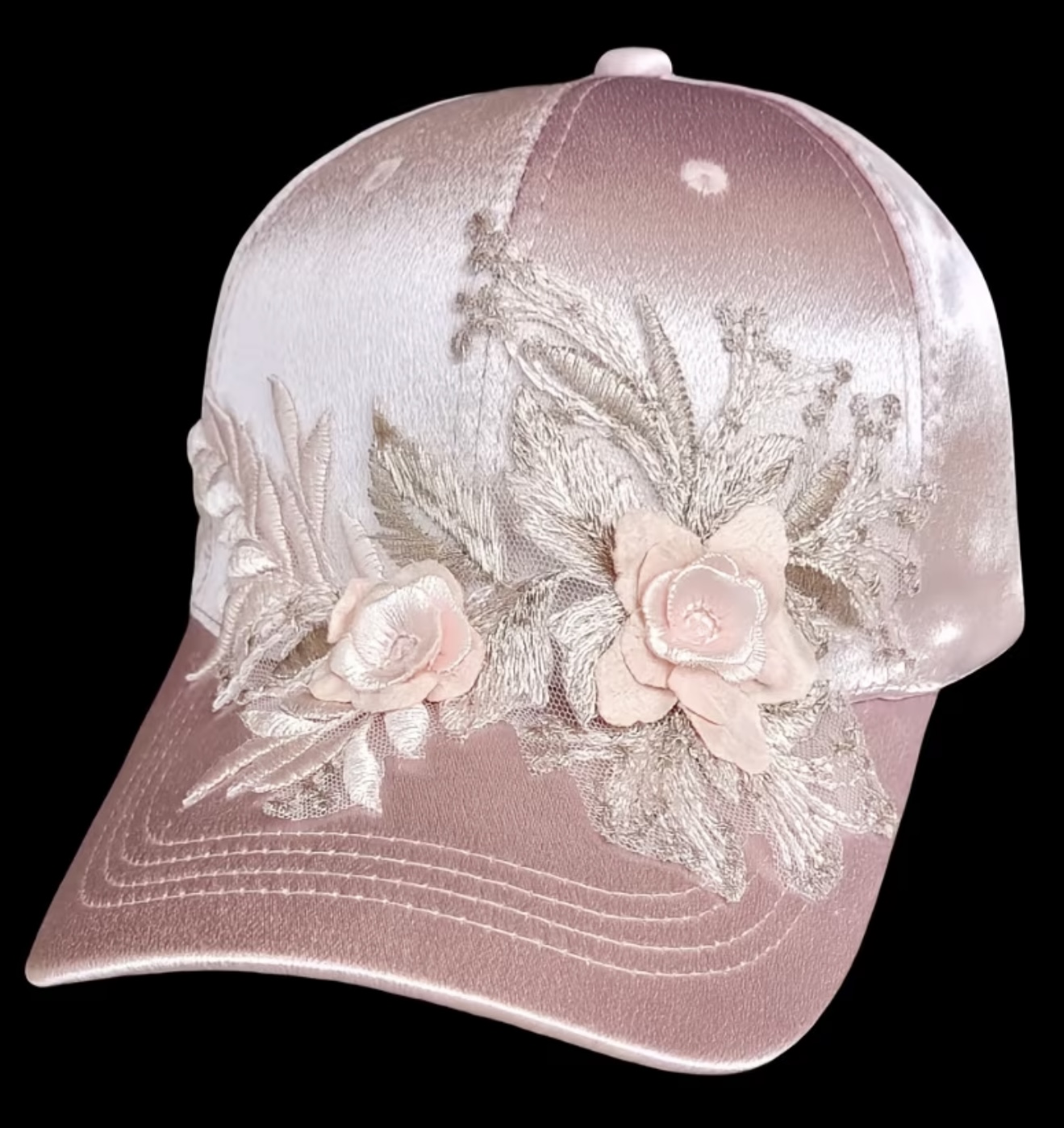 کلاه بیسبال ساتن صورتی با طرح گل به سبک بوهمی