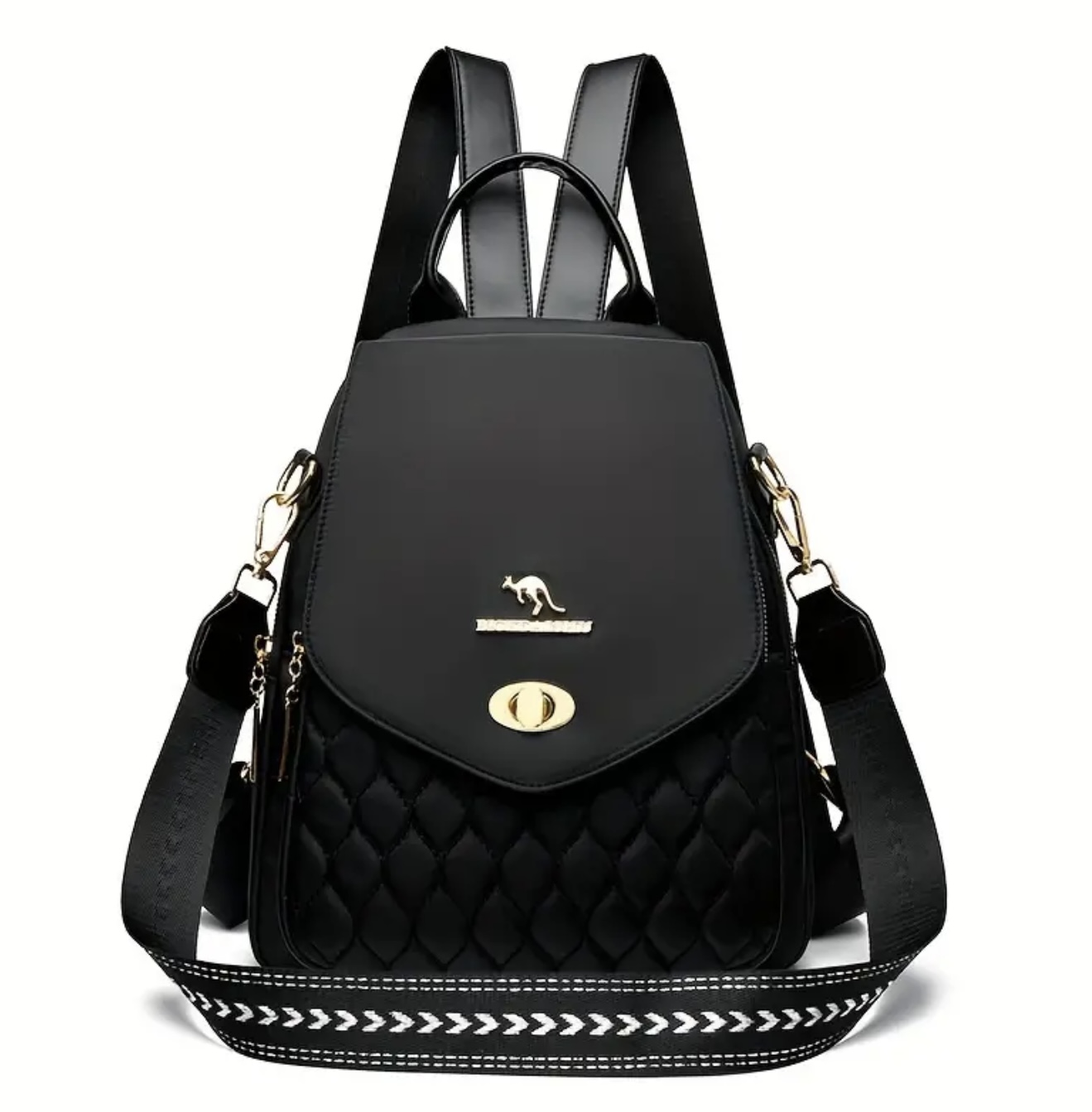 کوله‌پشتی از جنس پارچه آکسفورد – رنگ ساده گلدوزی شده، بند قابل تنظیم، زیپ ایمن، آستر پلی‌استر، طراحی تاشو با تزئینات