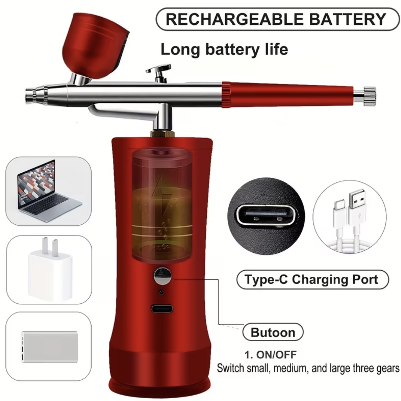 کیت ایربراش همراه با کمپرسور، مجموعه ایربراش قابل شارژ و بیسیم، ایربراش دستی مناسب طراحی ناخن، آرایش، نقاشی و تزئین کیک