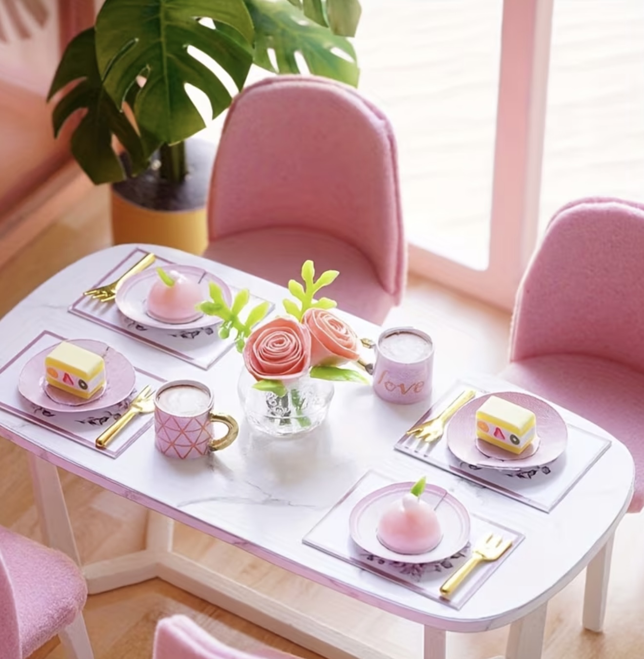دارای یک خانه هنری مینیاتوری با مبلمان، شامل صحنههای آشپزخانه، اتاق ناهارخوری، اتاق خواب و حمام