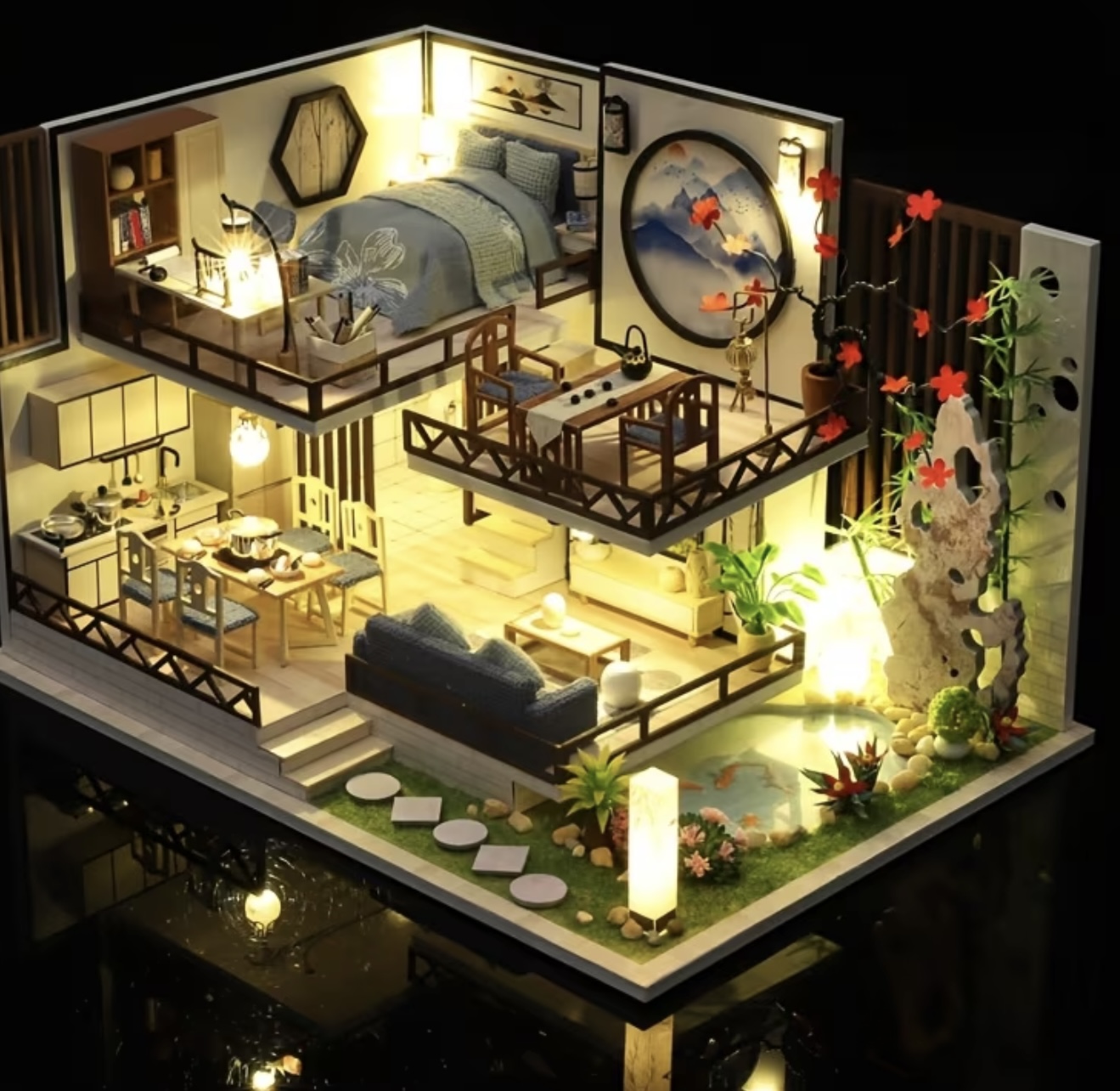 دارای سقف قابل برداشتن و دکور داخلی، ساختار چندطبقه با پلهها، فانوسها و مبلمان مینیاتوری – کیت مونتاژ DIY برای بزرگسالان و نوجوانان، هدیه تولد، کریسمس، شکرگزاری یا عید پاک، تمرکز آموزشی بر صبر و آگاهی فضایی، طراحی الهامگرفته از سبک سنتی آسیایی با جزئیات پیچیده و افکتهای نورپرداز