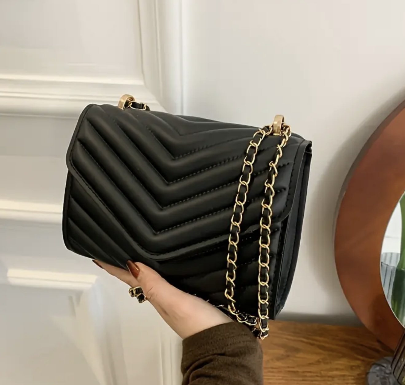 & Free Shippingکیف دوشی زنانه شیک با طرح V شکل و دوخت لوزی