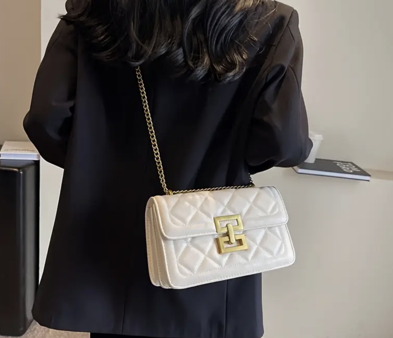 کیف کراس‌بادی با بند زنجیری قابل جدا شدن – کیف کوچک مربعی با رنگ ساده، قفل مغناطیسی و طراحی مینیمال و ساد