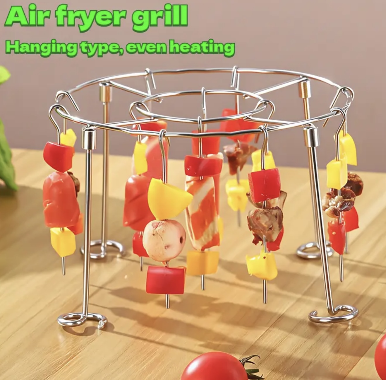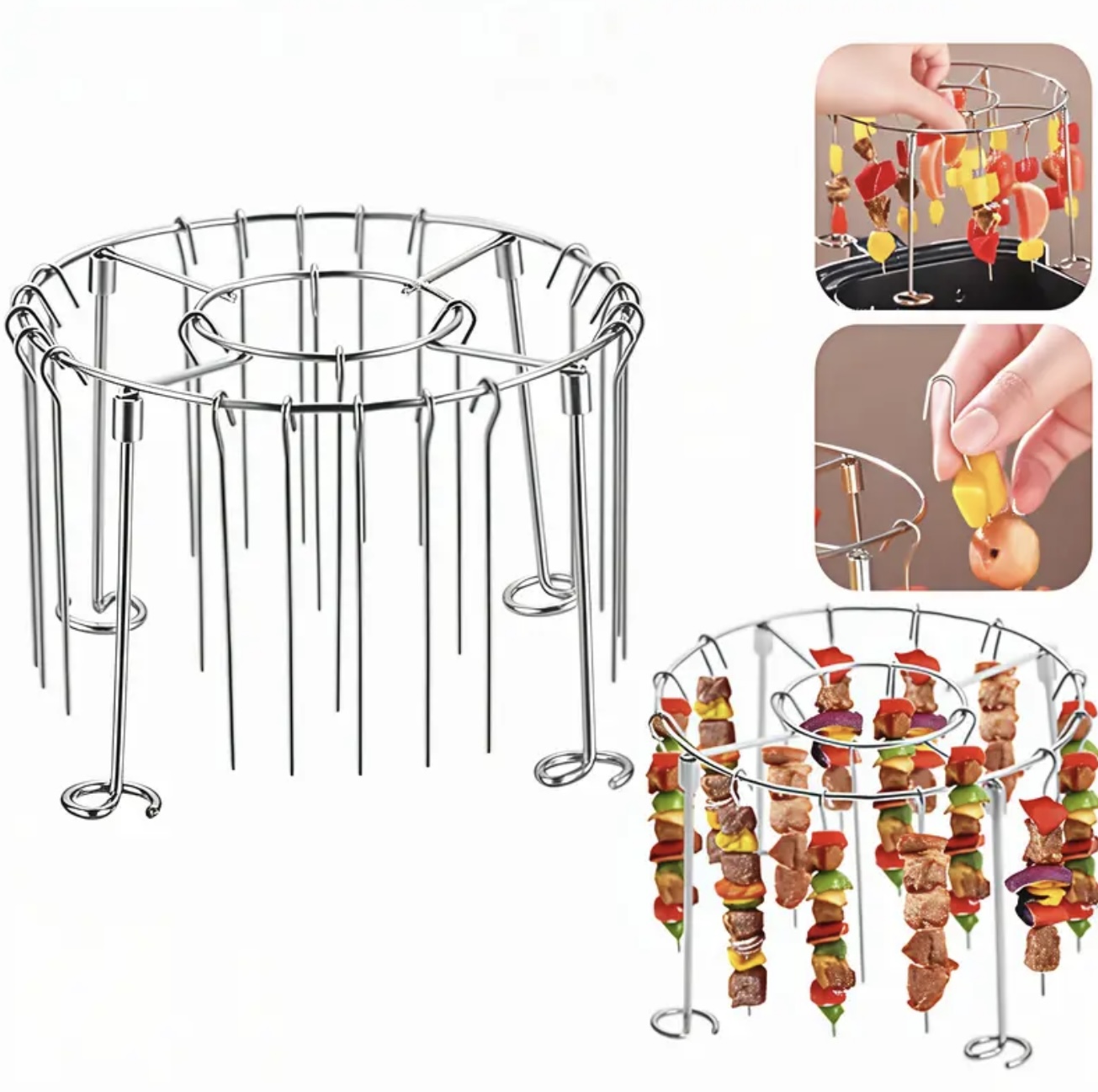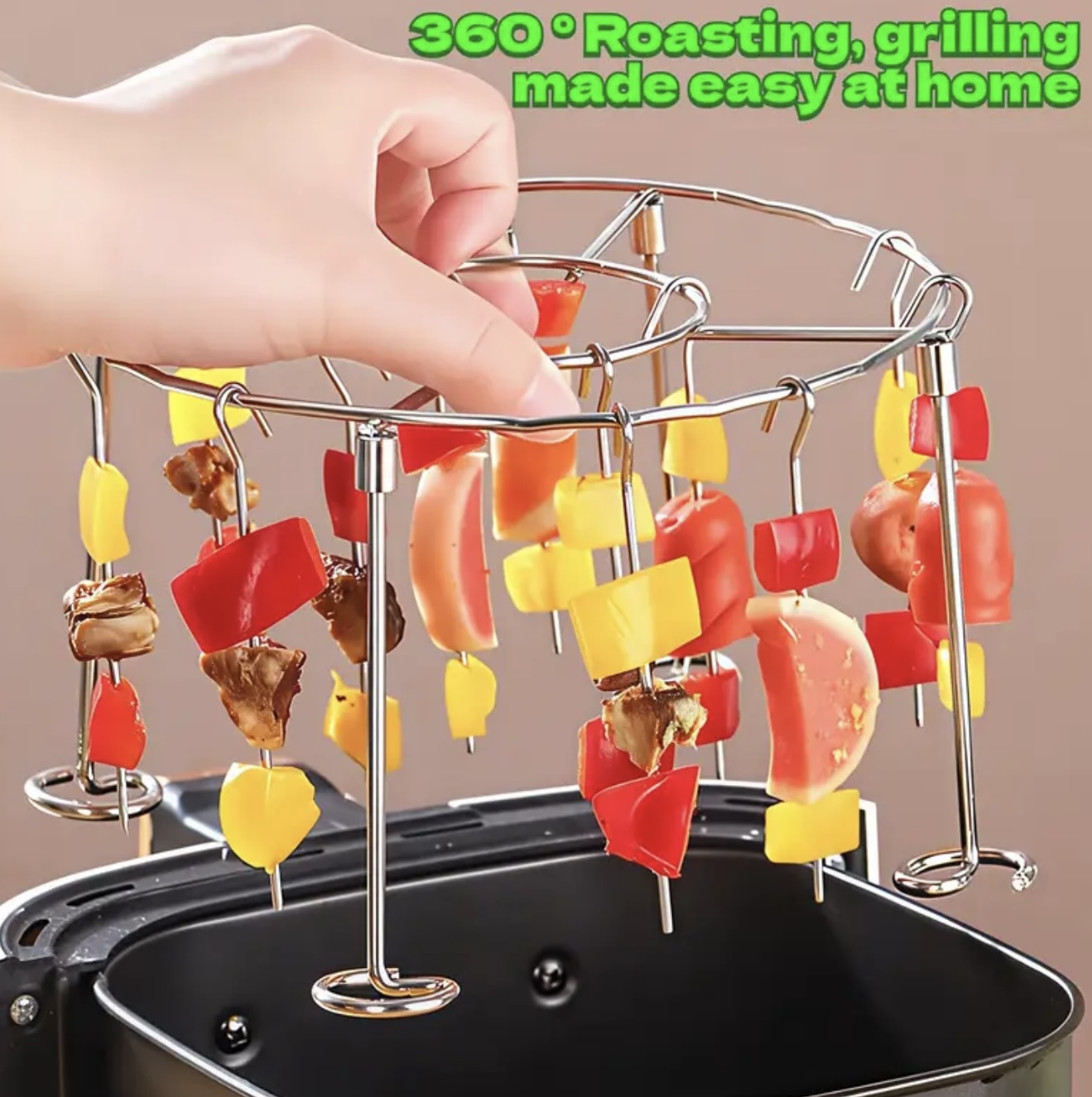 گریل عمودی و سیخ از جنس استیل ضدزنگ 304 بههمراه ۲۴ عدد سیخ، مناسب برای سرخکنهای بدون روغن (Air Fryer Oven) با ظرفیت ۳ تا ۶ کوارت، یک ابزار ضروری برای آشپزخانه و گریل در فضای باز.