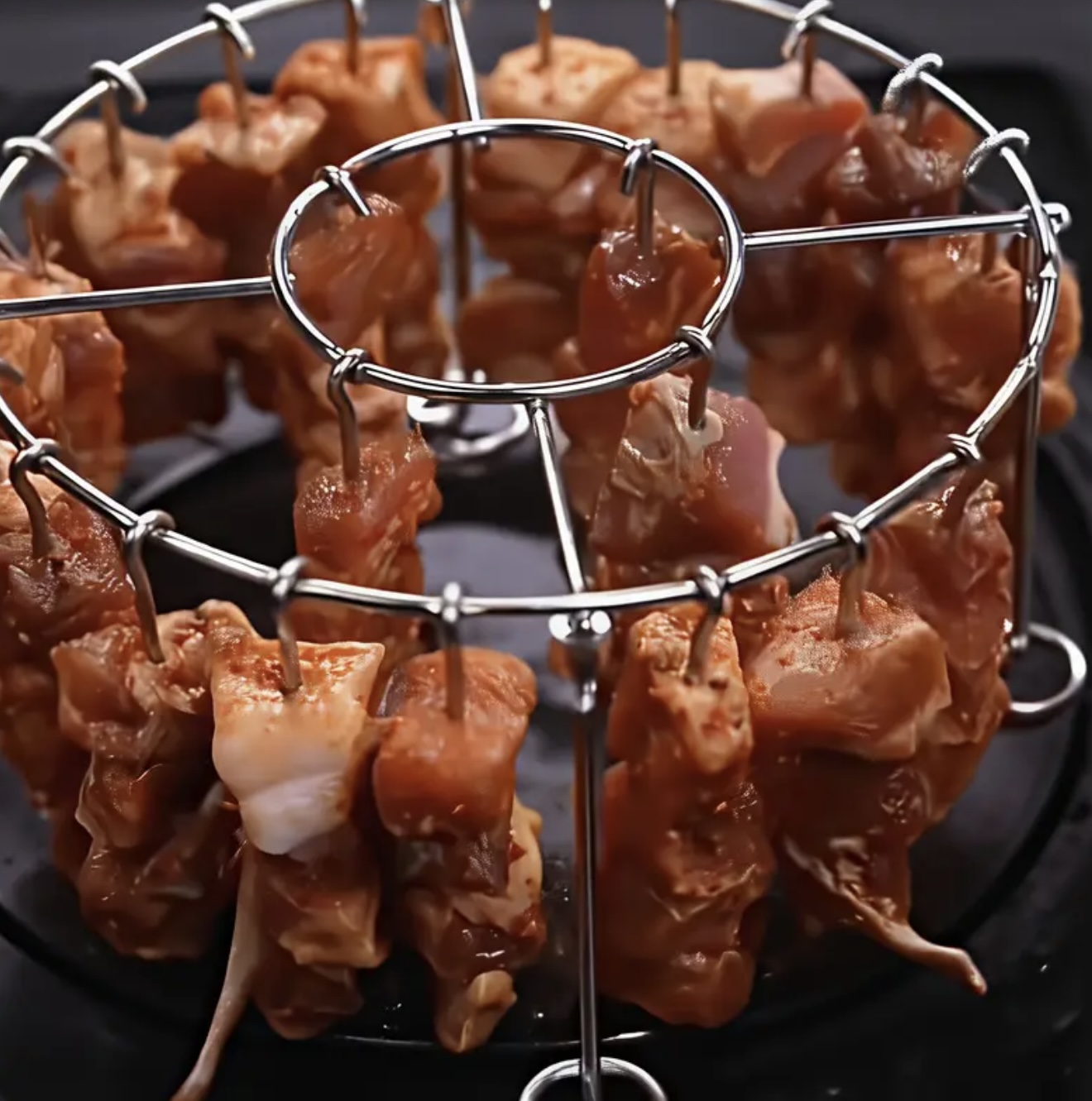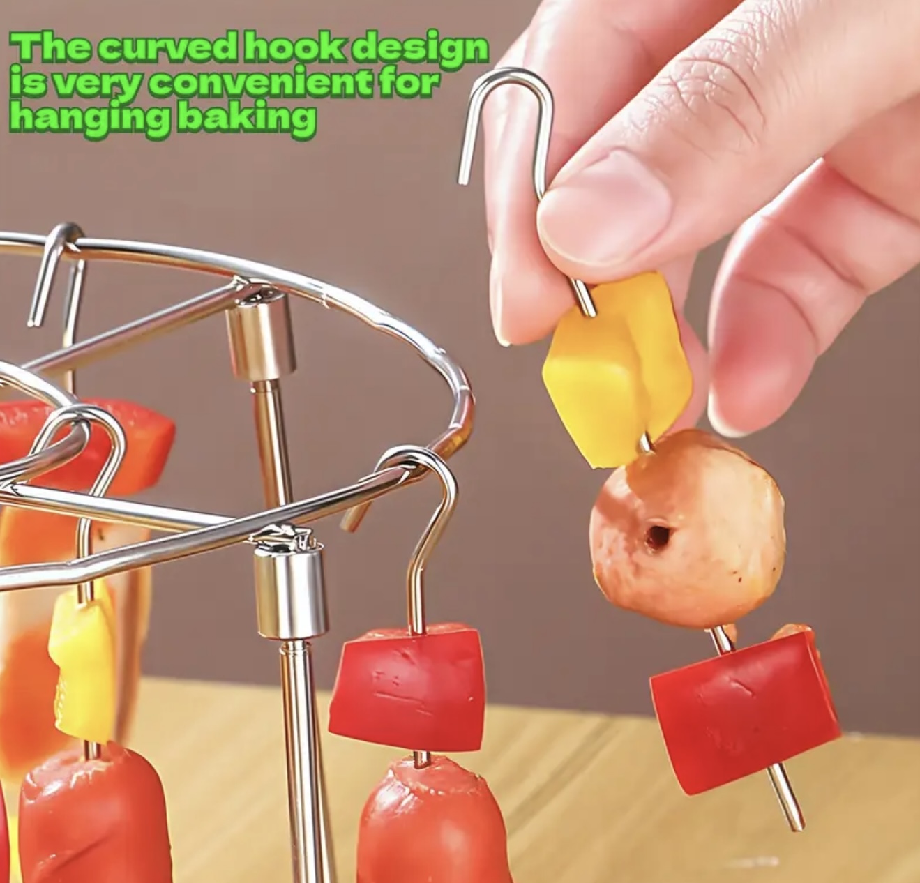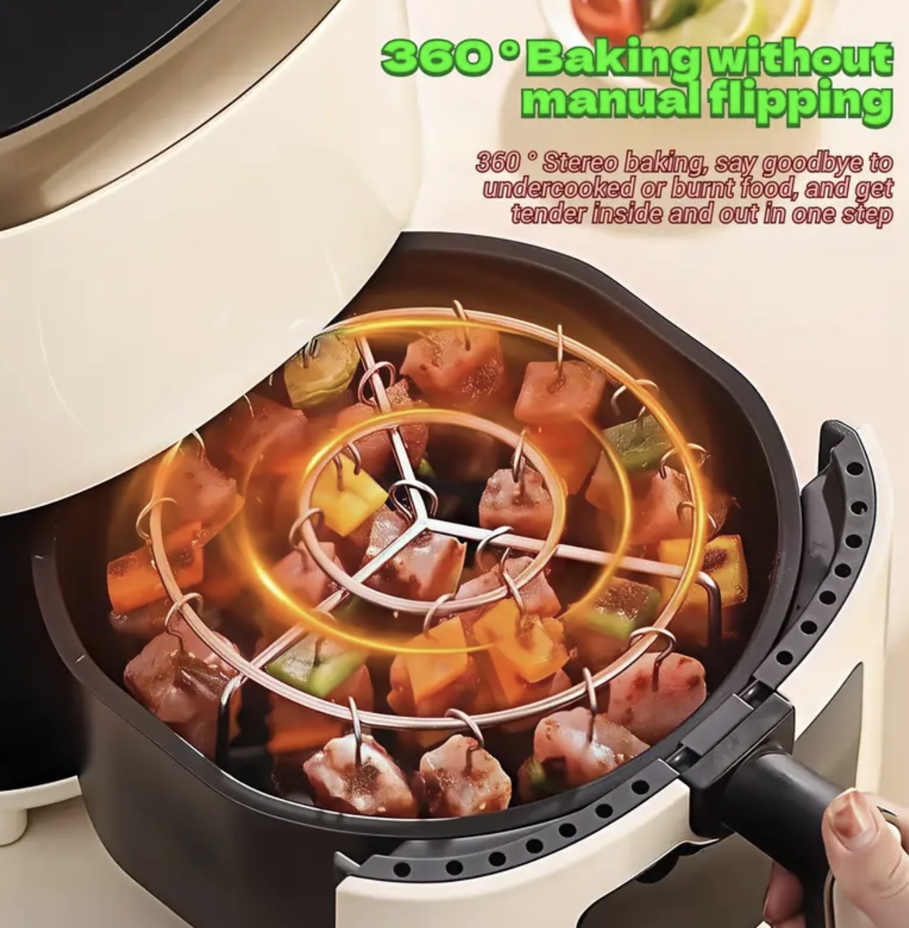 گریل عمودی و سیخ از جنس استیل ضدزنگ 304 بههمراه ۲۴ عدد سیخ، مناسب برای سرخکنهای بدون روغن (Air Fryer Oven) با ظرفیت ۳ تا ۶ کوارت، یک ابزار ضروری برای آشپزخانه و گریل در فضای باز.
