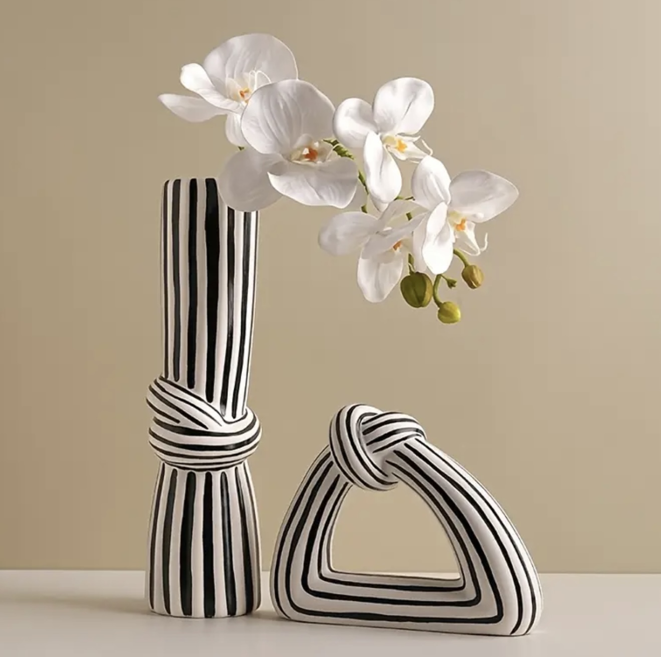 ست گلدان سرامیکی شیک با طرح راهراه و گره