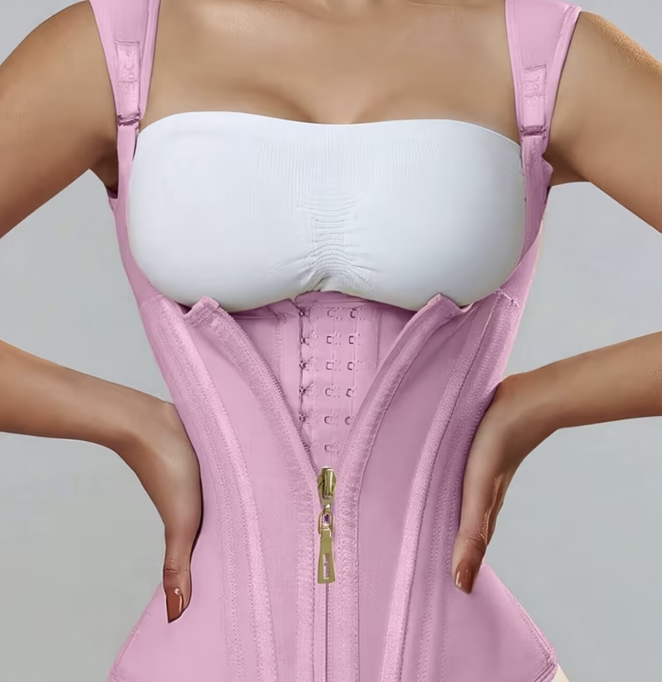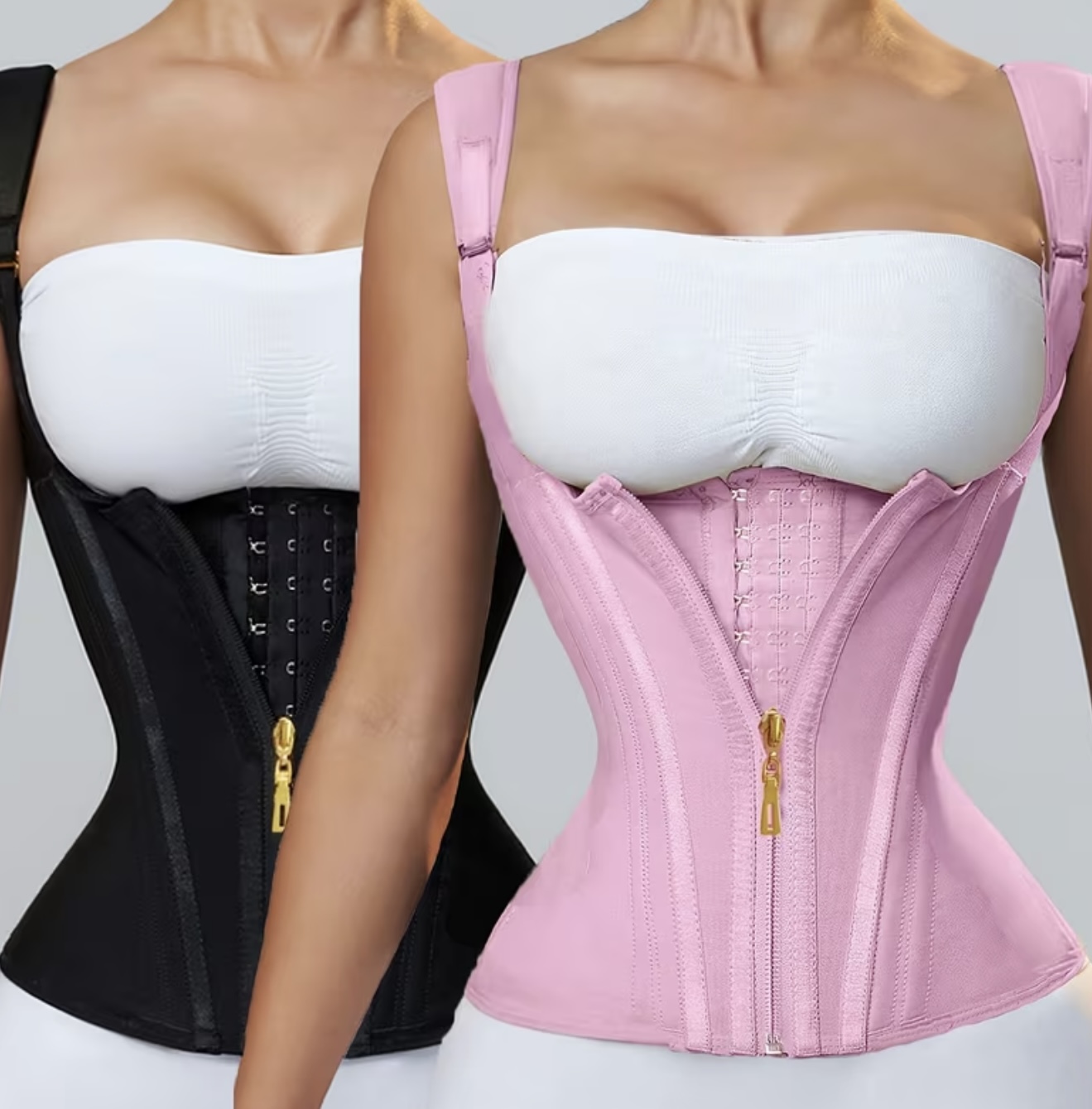 گن فرم‌دهنده کمر زنانه قابل تنظیم با زیپ و قفل سگکی، کمربند لاغری بدن، ساخته‌شده از لاتکس اسپندکس تنفس‌پذیر، قابل شست‌وشوی دستی، در رنگ‌های مشکی یا صورتی، با فیت ایمن و محکم | گن زیپ‌دار جلو | کمربند پارچه‌ای بادوام با کنترل شکم