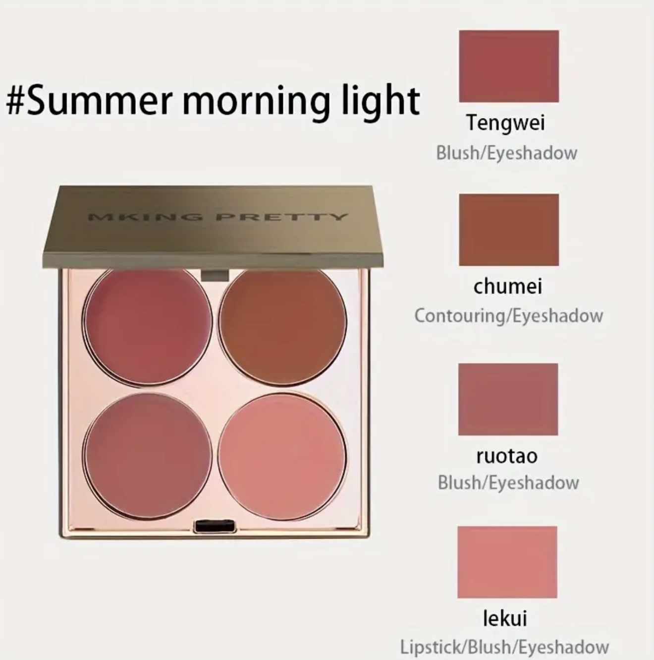 MKING PRETTY – محصول چندکاره شامل رژگونه، سایه چشم، کانتورینگ و رژلب در یک جعبه. بافت نرم و لطیف، جلوه مات، قابل استفاده روی تمام صورت و مناسب آرایش روزانه