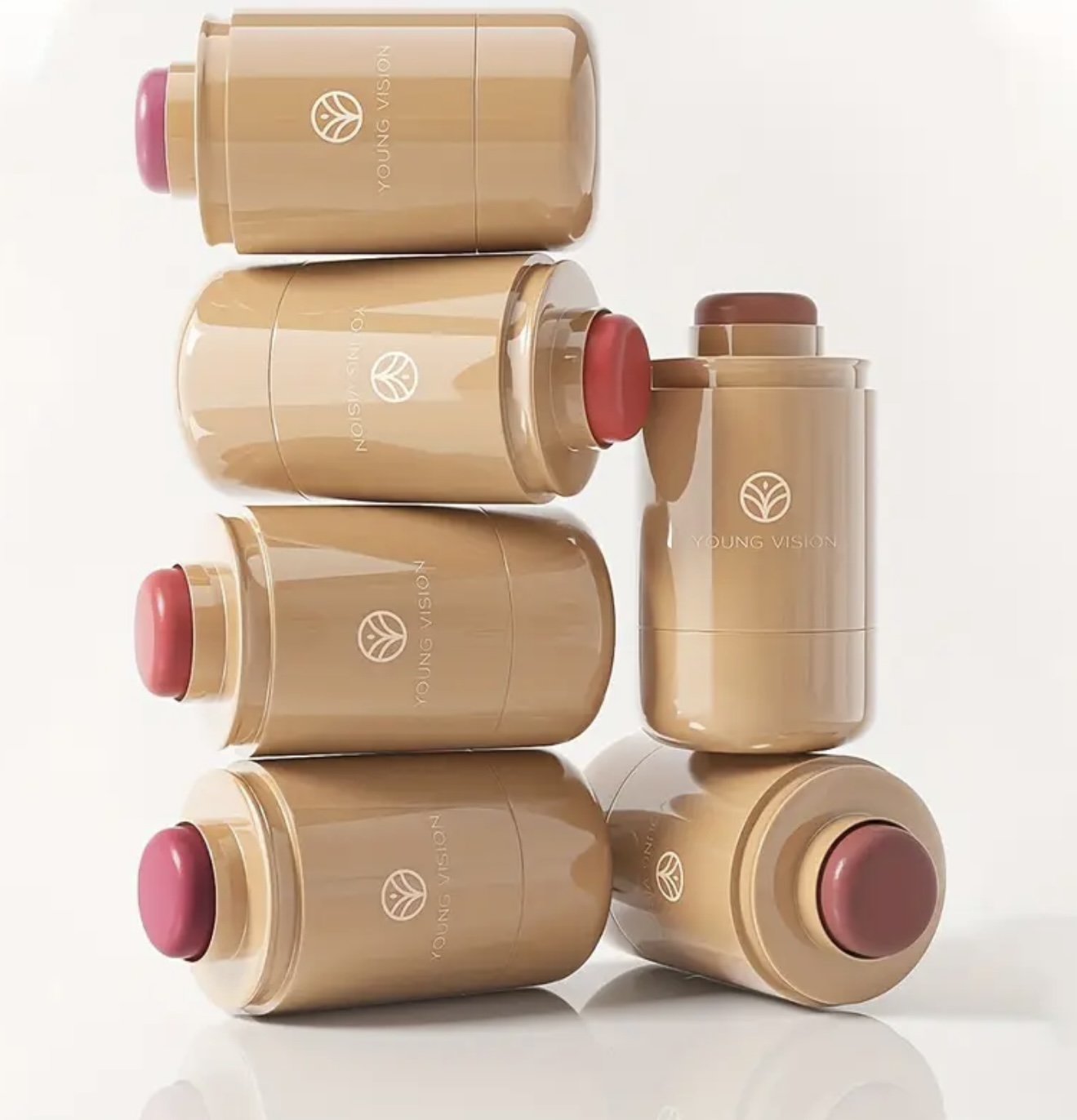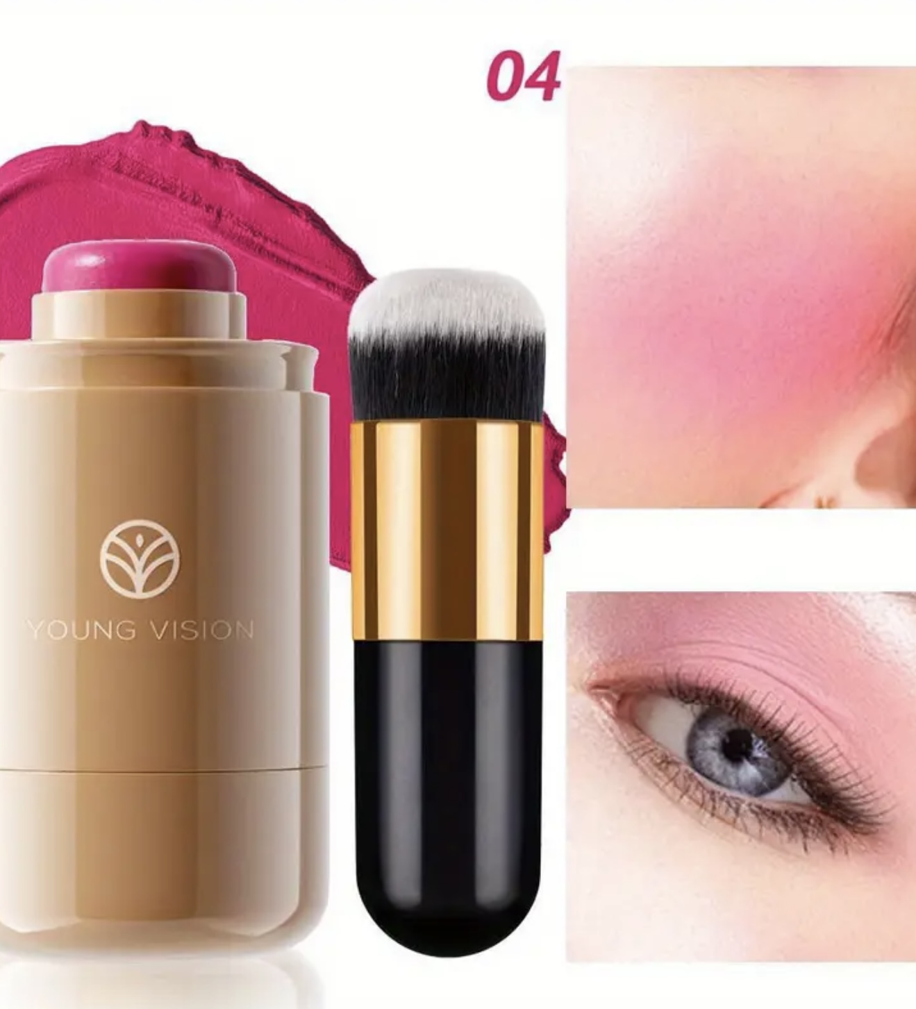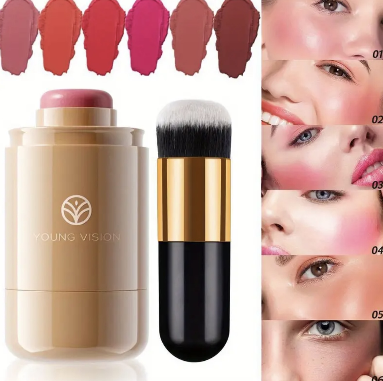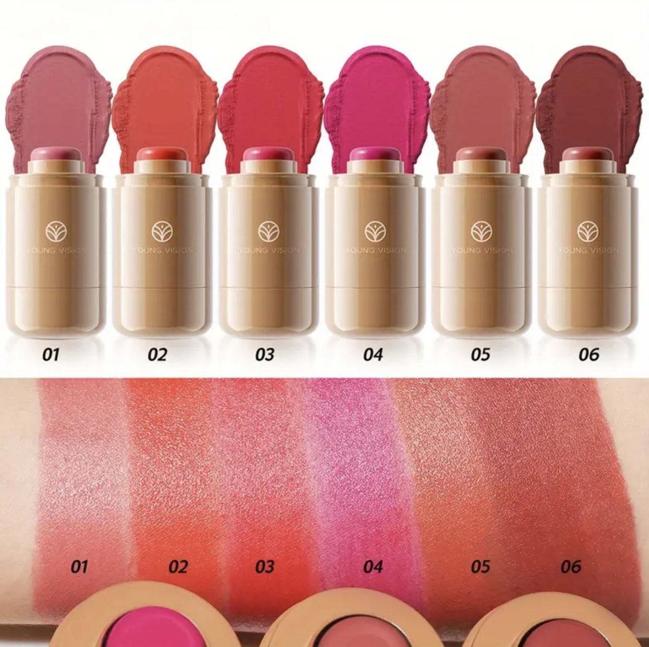 ست ۲ عددی رژگونه Young Vision – پالت کرمی ۳ در ۱ همراه با برس، فرمول مخملی ضدآب، برسهای دو فیبر برای ترکیب آسان، استیک چندکاره قابللایهسازی برای لبها، گونهها و چشمها، شامل ۶ طیف طبیعی، هدیهای ایدهآل برای بانوان